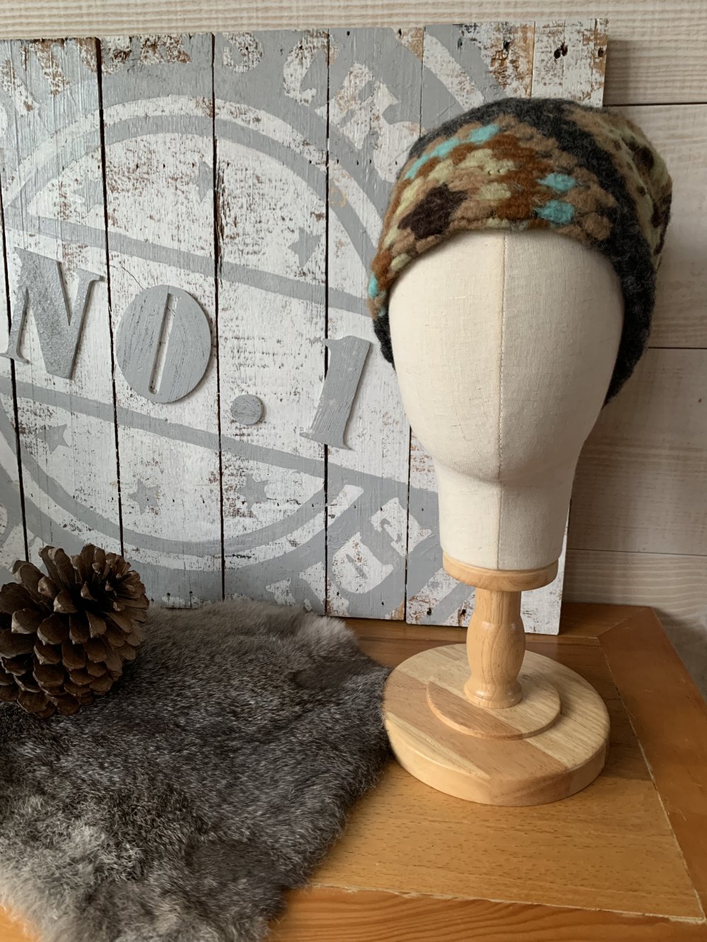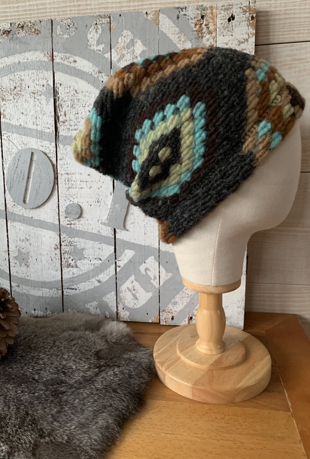 Bonnet réalisé en maille à motifs géométriques ultra-tendance.