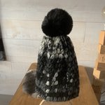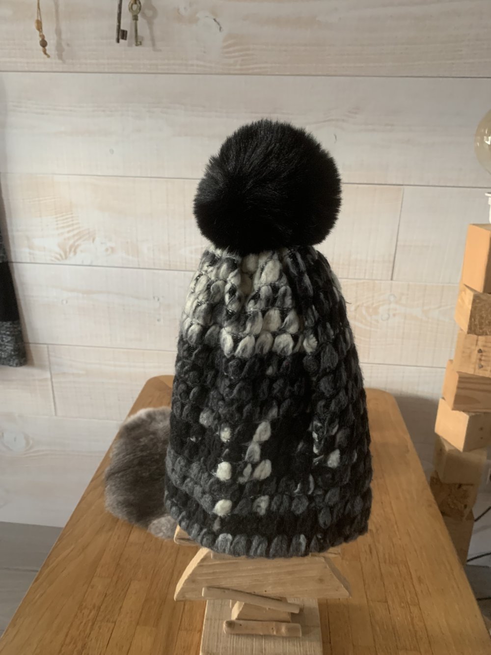 Bonnet à pompon réalisé dans une maille aérée ''bosselée'' légère, moelleuse et bien chaude.