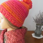 Bonnet tricoté main en grosse laine dans un joli dégradé d'orange ..