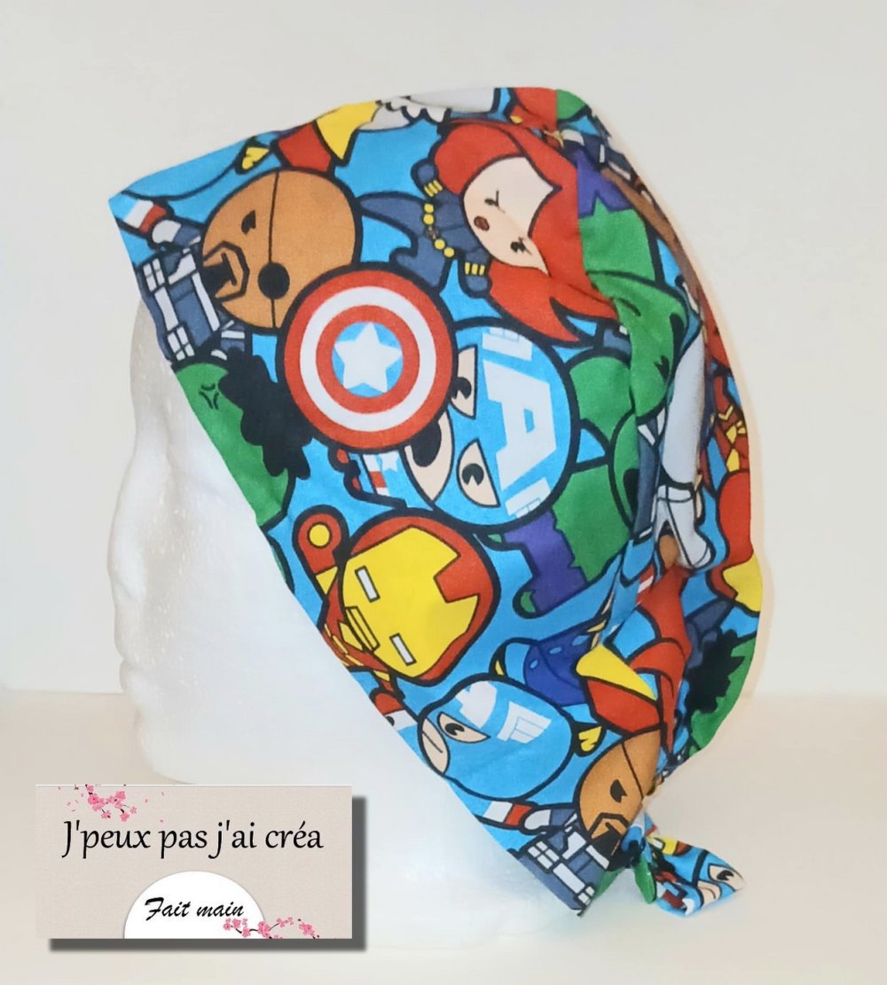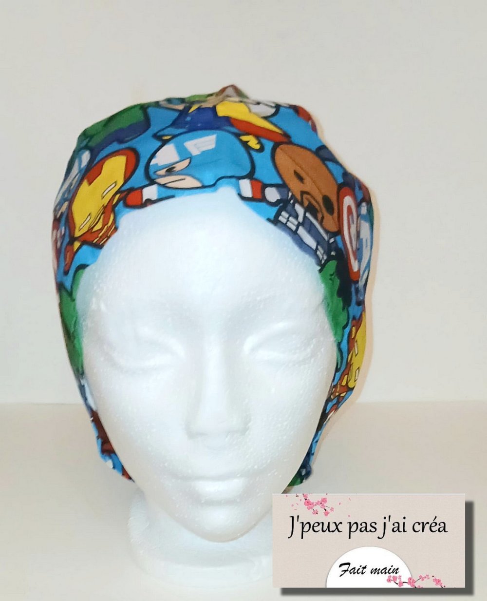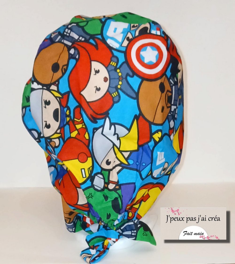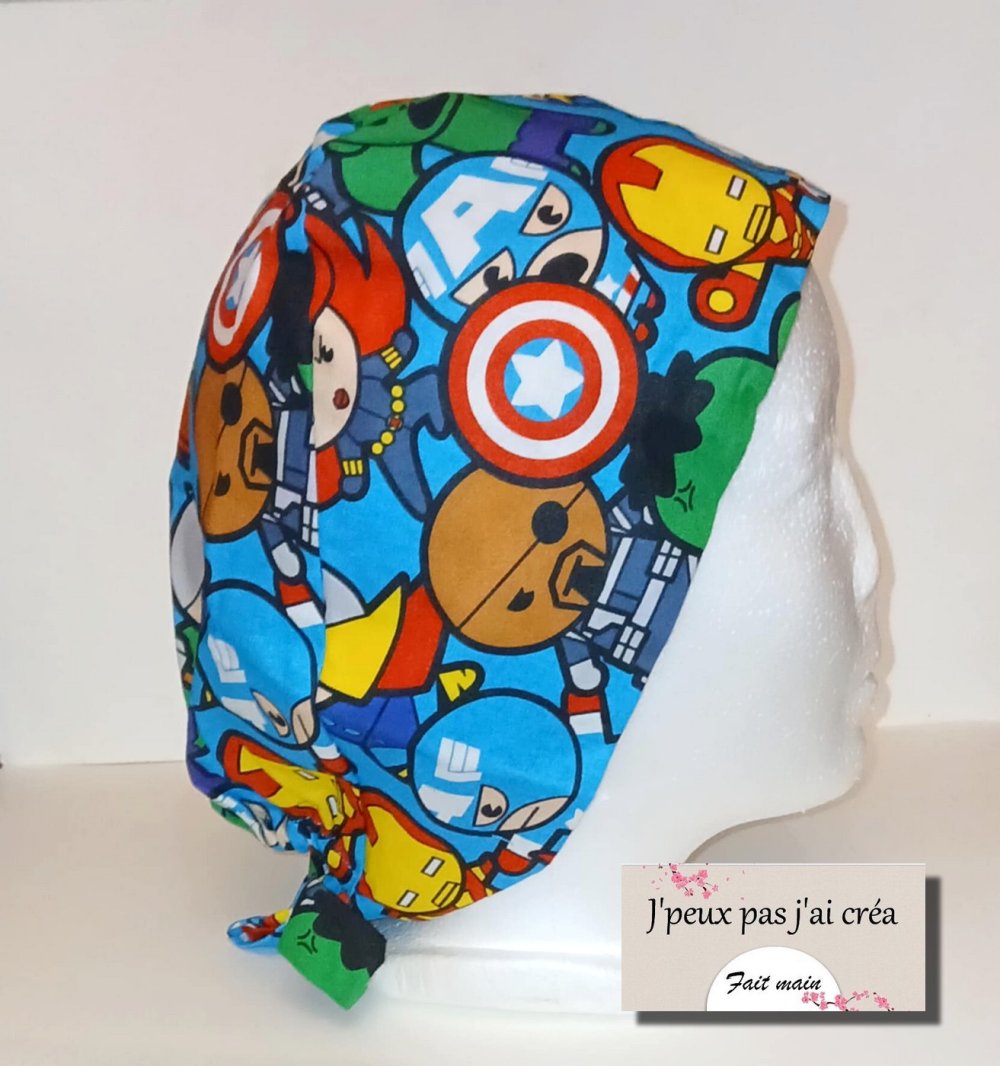 Calot de bloc opératoire, chirurgien, vétérinaire, asv, infirmière,motif : super heros