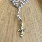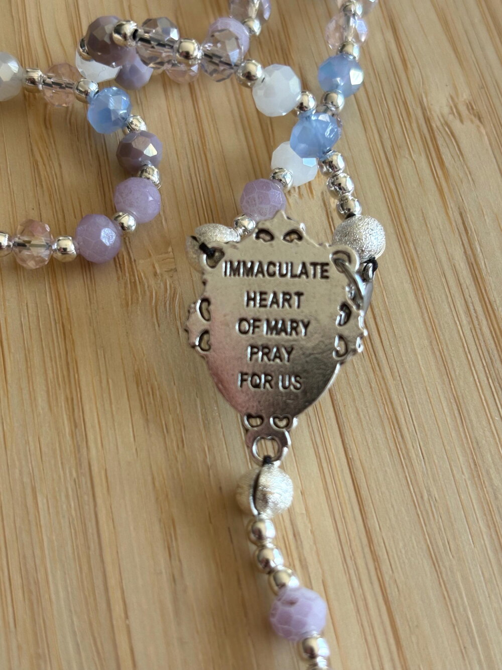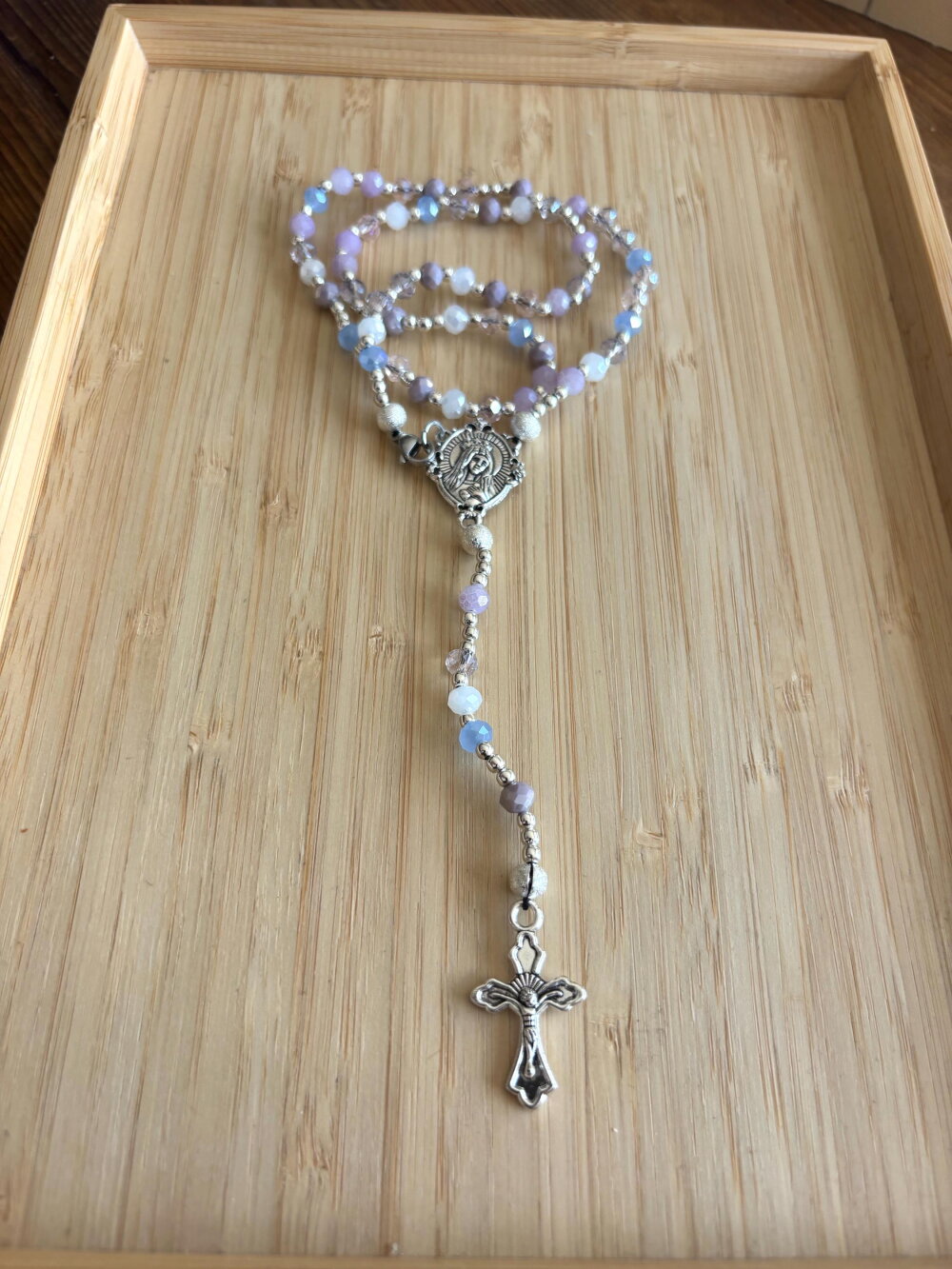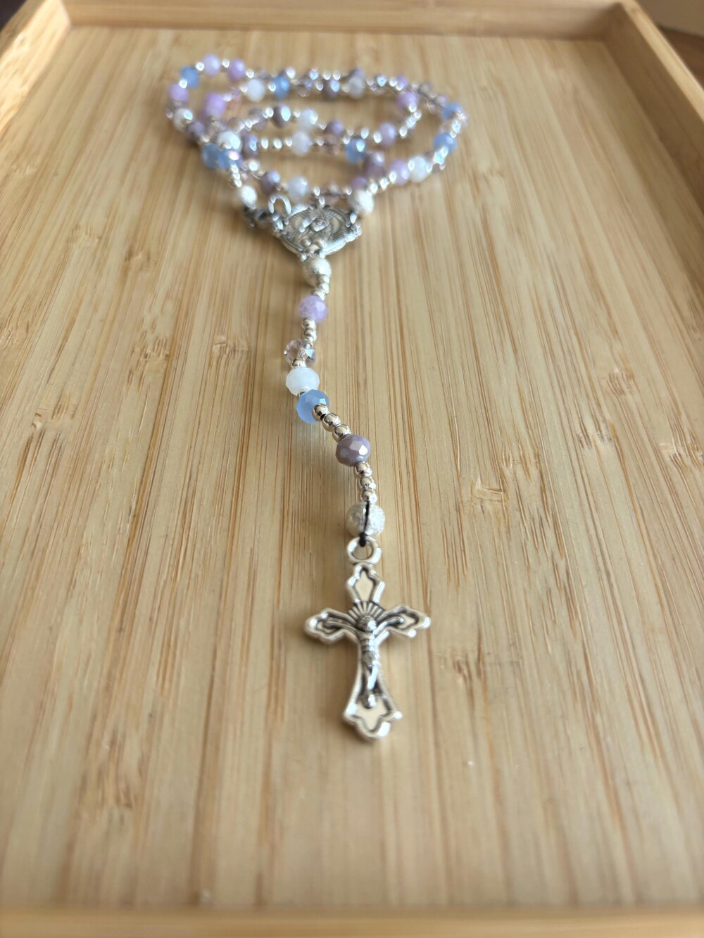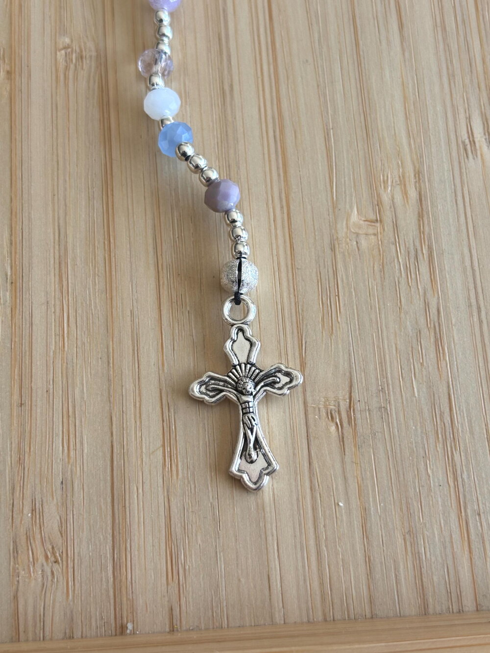 Chapelet Chrétien , rosaire Chrétien fait main, chapelet composé de perles en cristal de 6 mm, dégradé de mauve avec sa croix argent en métal inoxydable.
