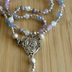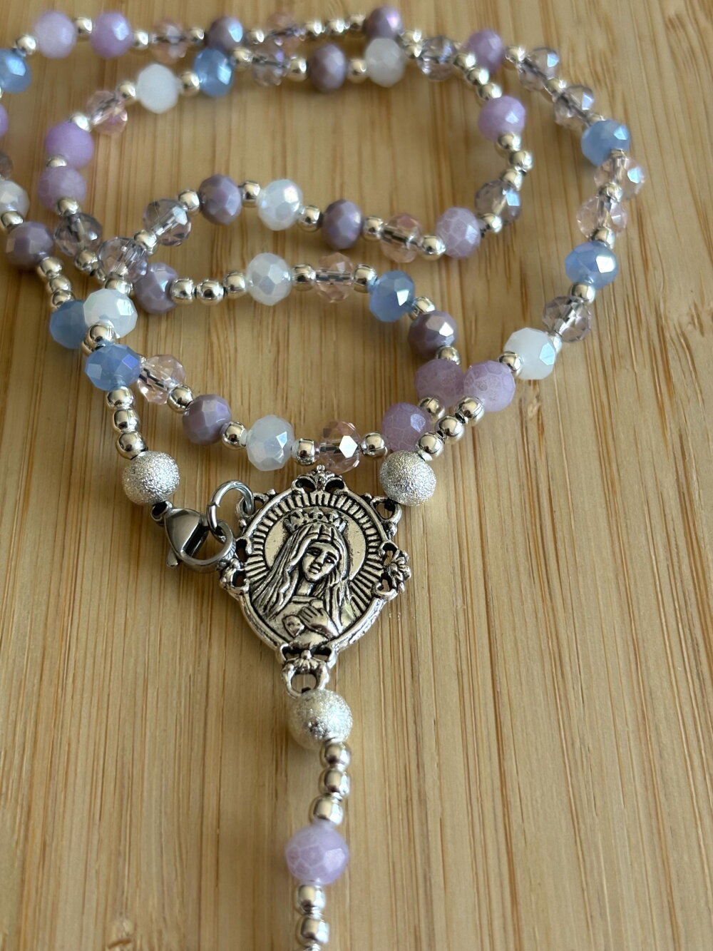 Chapelet chrétien, chapelet cristal mauve, chapelet perles lilas, rosaire chrétien, chapelet croix argent, rosaire protection, cadeau