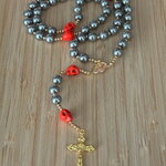 Chapelet chrétien, chapelet perles noir nacré, chapelet tête de mort, chapelet noir et orange, chapelet protection, chapelet porte bonheur