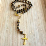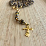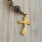 Chapelet chrétien fait main œil de tigre, chapelet de protection, chapelet croix or, rosaire chrétien, rosaire porte bonheur, cadeau