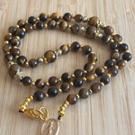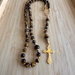 Chapelet chrétien fait main composé de perles naturelles œil de tigre de 6 mm et 8 mm.