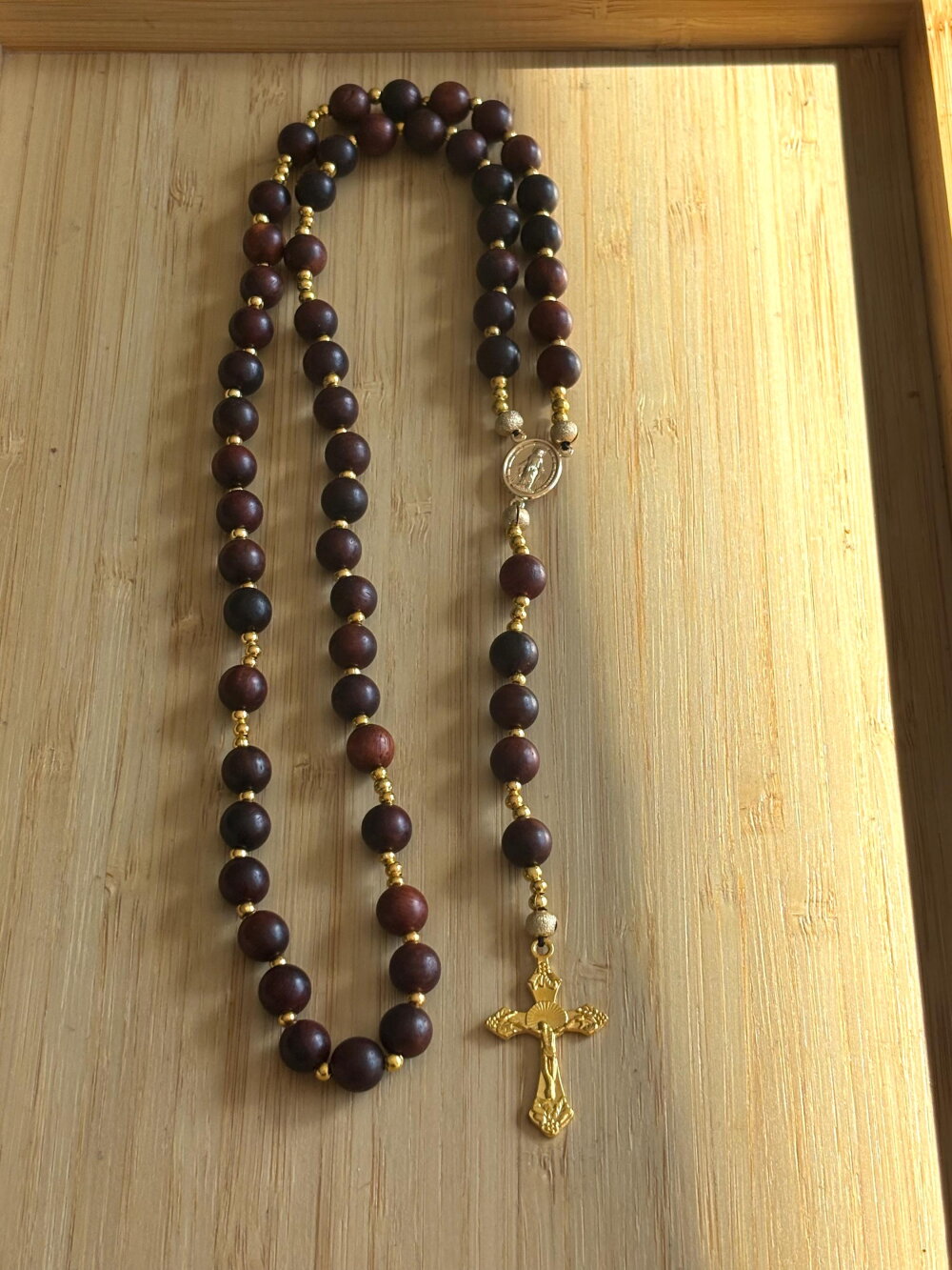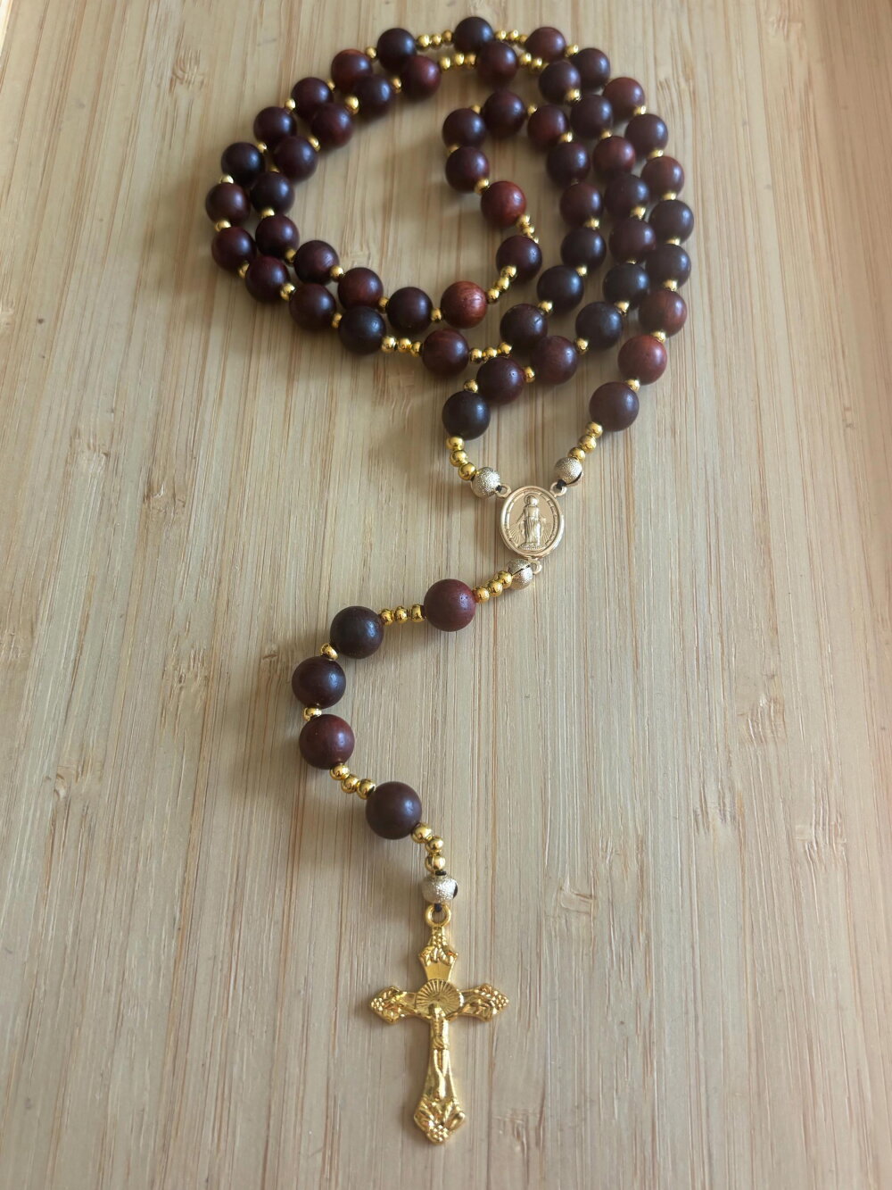 Chapelet chrétien, rosaire chrétien, chapelet bois santal, rosaire bois naturel , chapelet croix or, rosaire protection, chapelet catholique