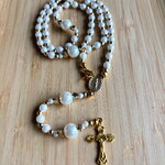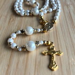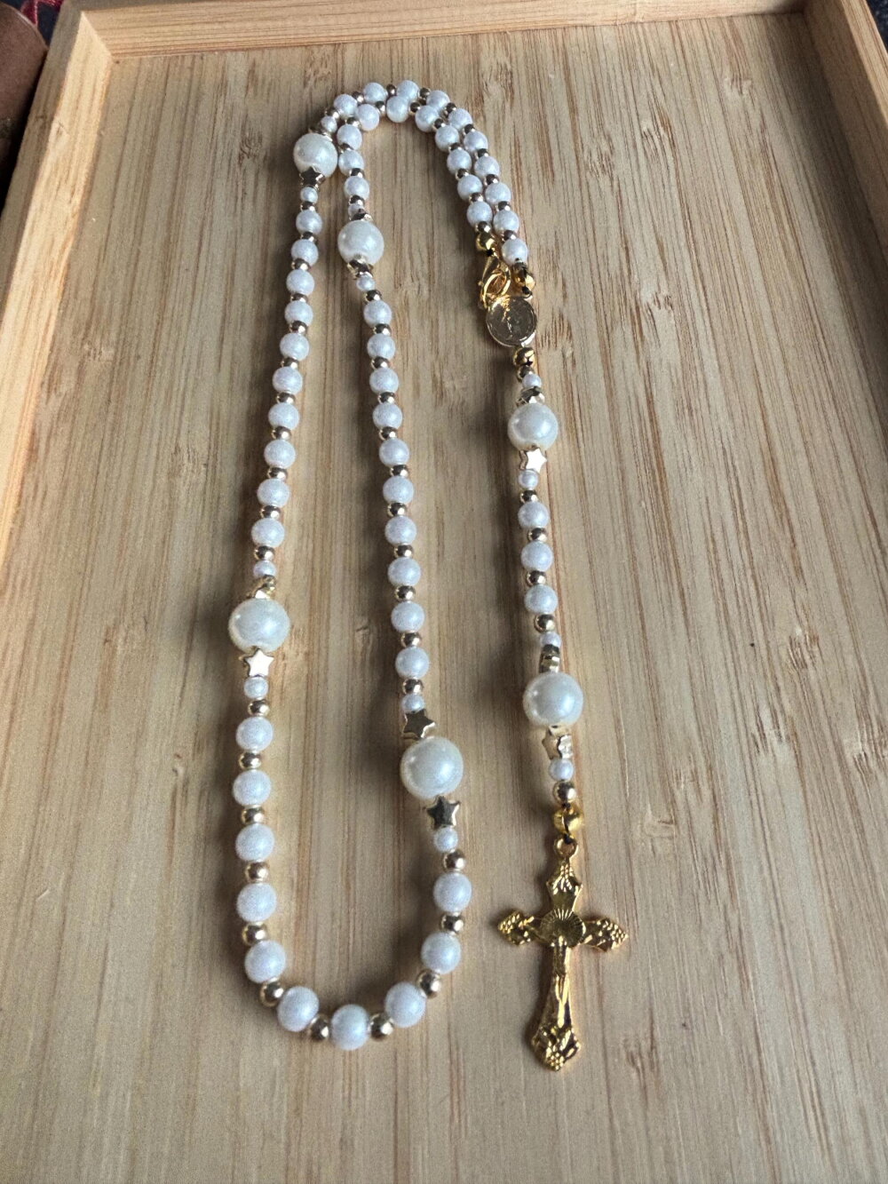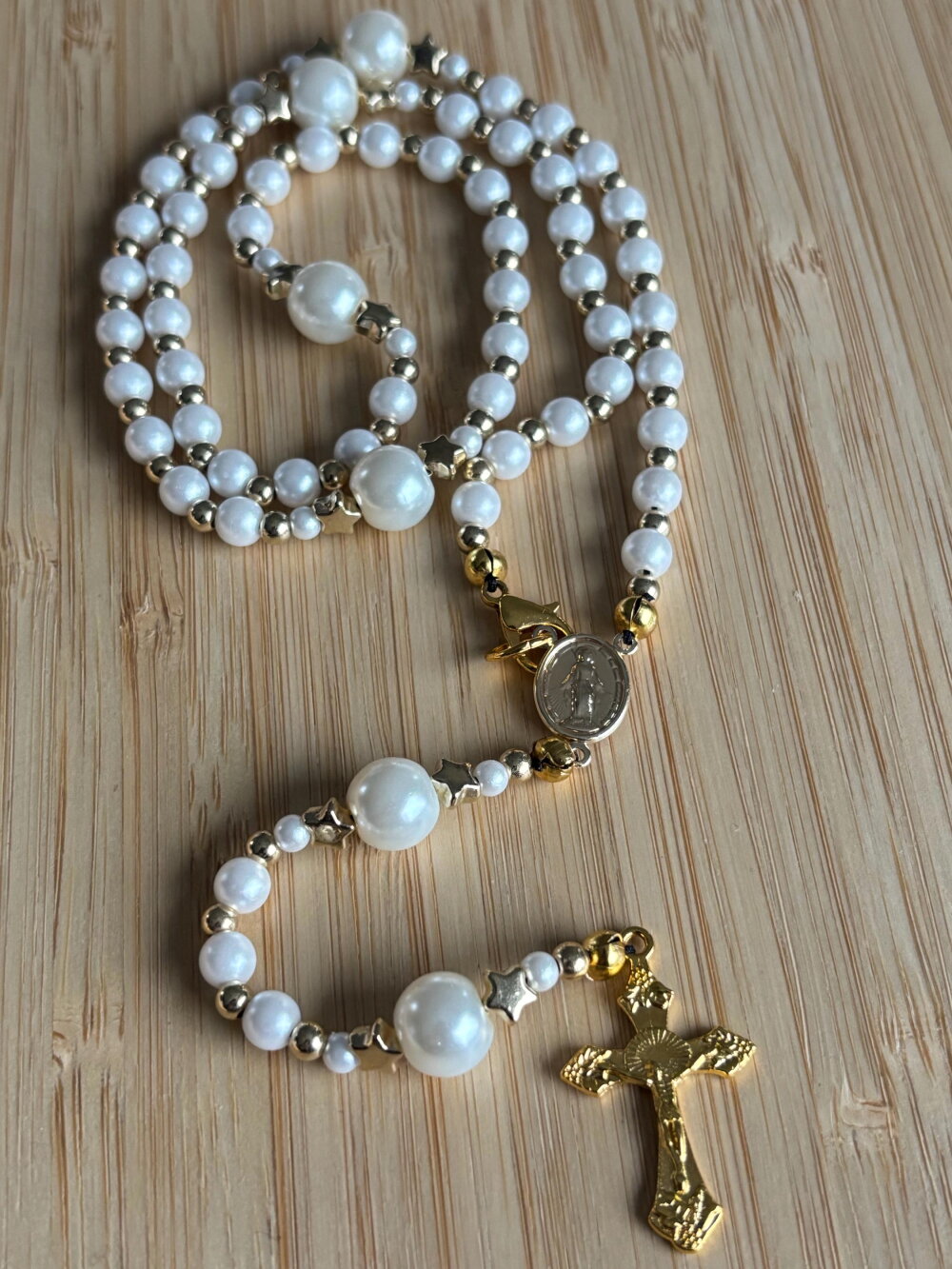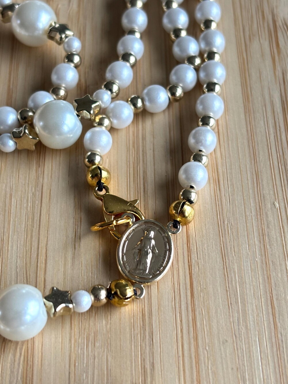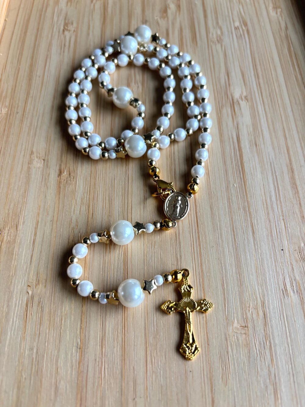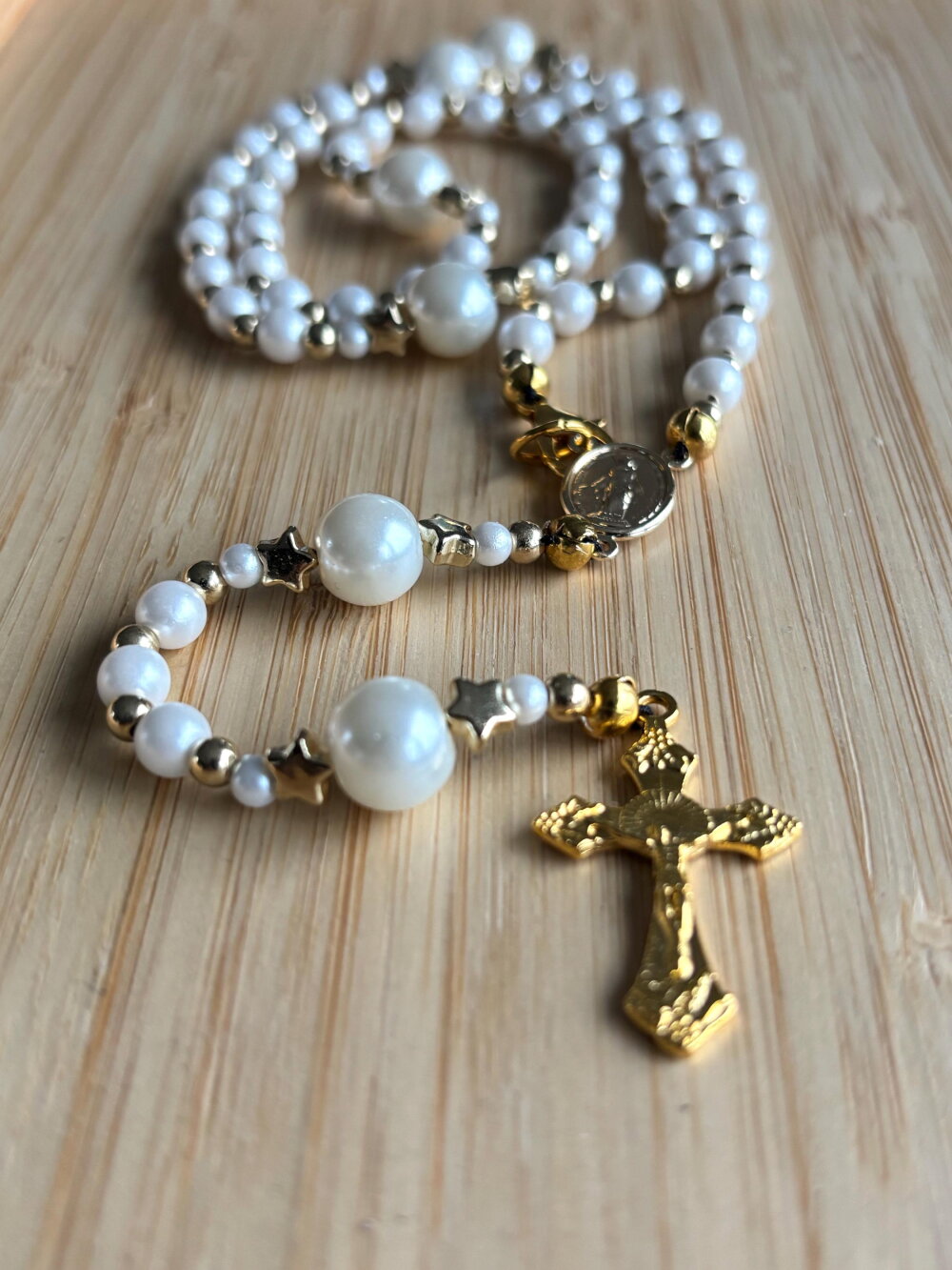 Chapelet chrétien, rosaire Chrétien, chapelet chrétien traditionnel, chapelet perles blanche, chapelet blanc or, chapelet protection, cadeau