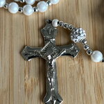 Chapelet chrétien, rosaire Chrétien, chapelet chrétien traditionnel, chapelet perles blanches, chapelet perles nacrées, cadeau religieux,