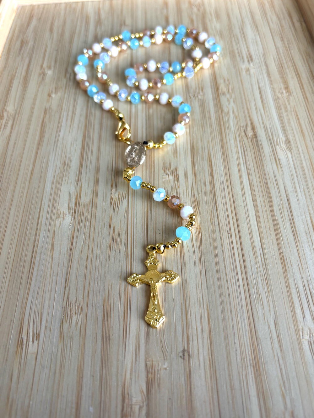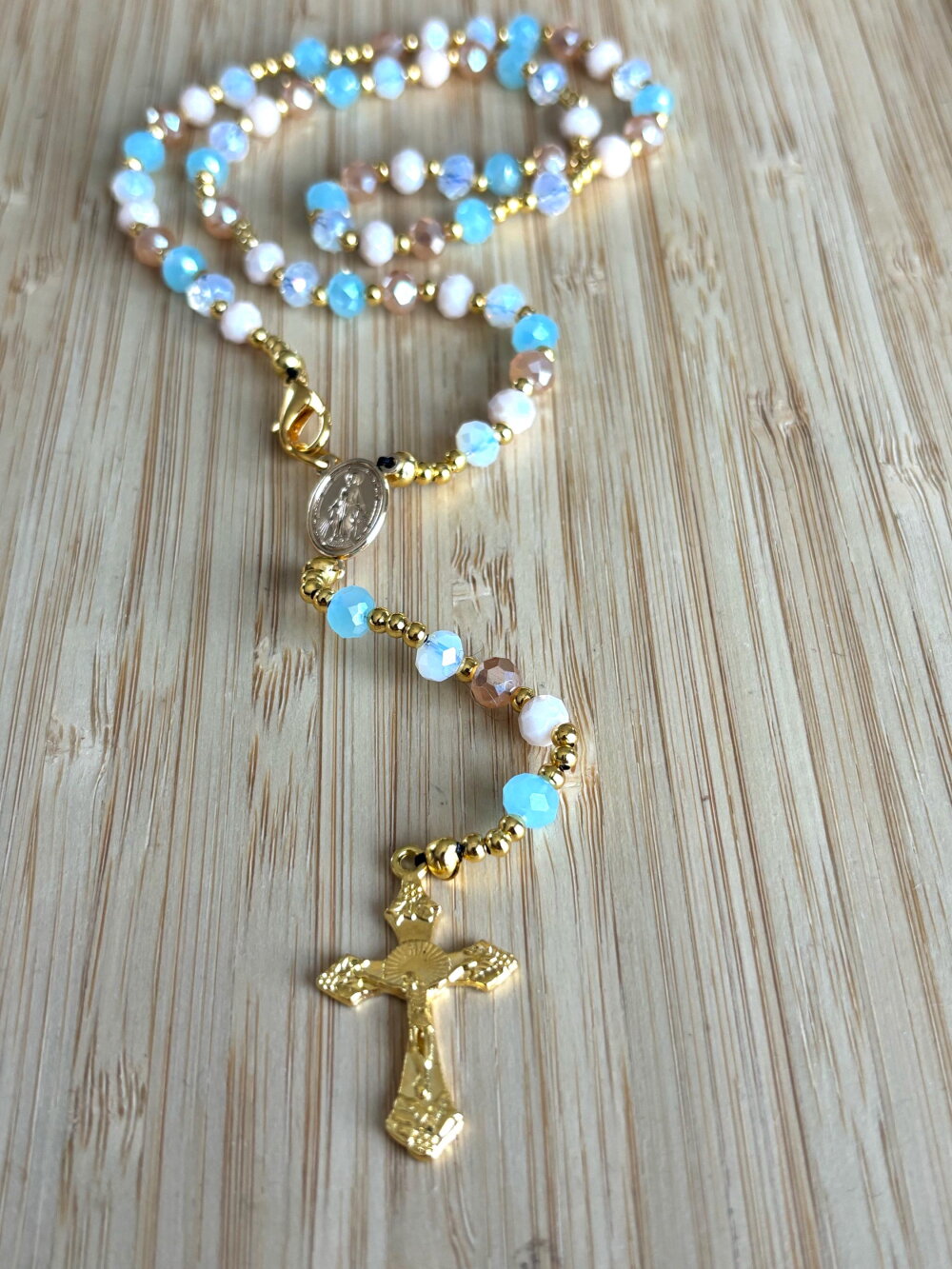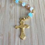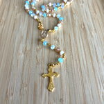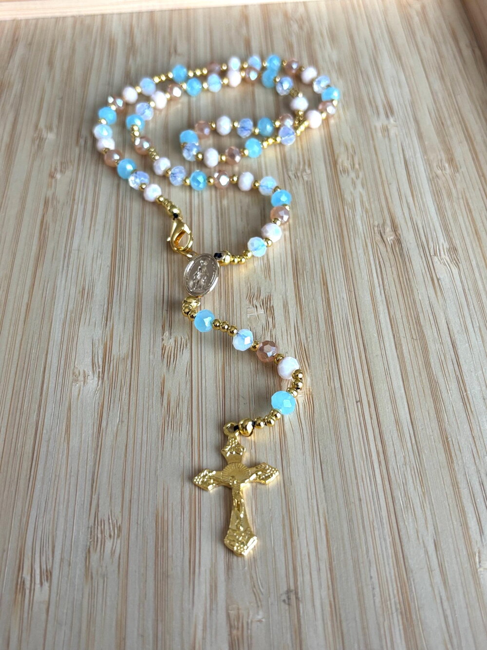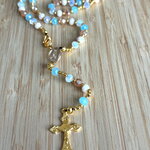 Chapelet chrétien, rosaire chrétien, chapelet cristal bleu, chapelet cristal beige, chapelet spirituel chrétien, rosaire de prière, cadeau