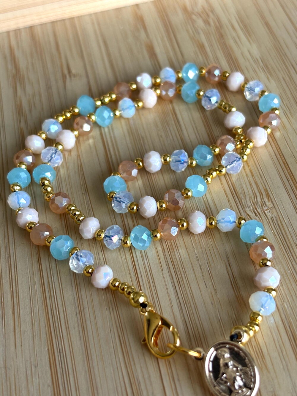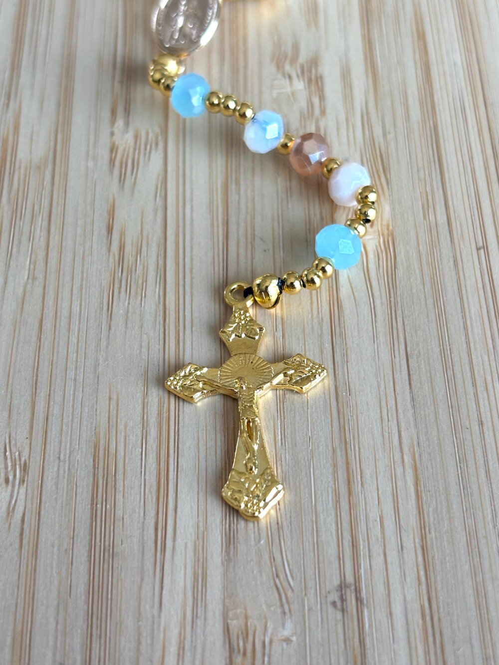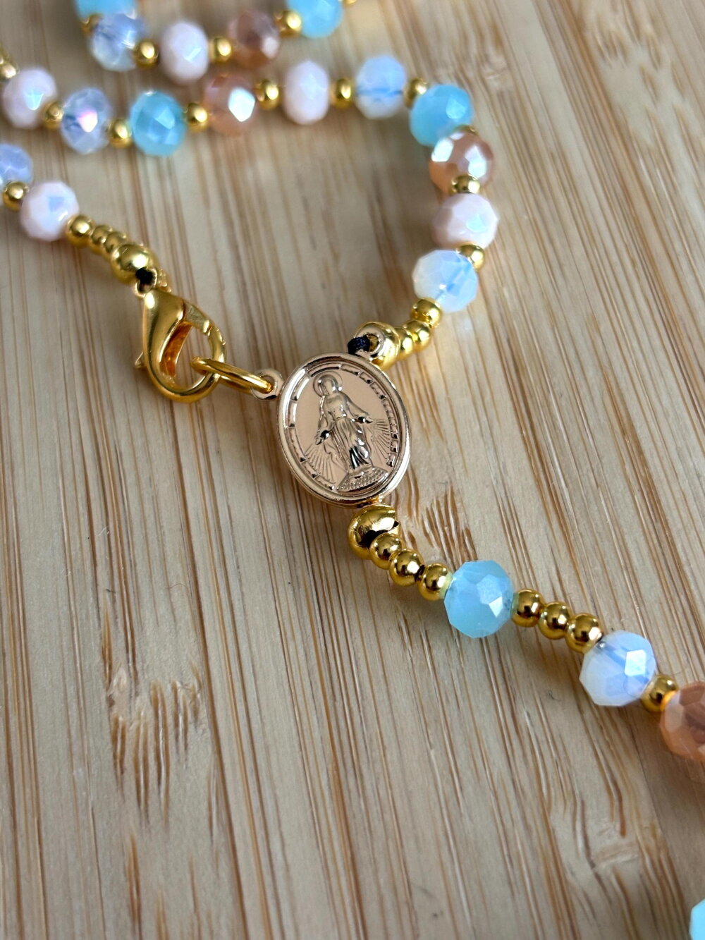 Chapelet chrétien, rosaire chrétien, chapelet cristal bleu, chapelet cristal beige, chapelet spirituel chrétien, rosaire de prière, cadeau