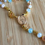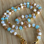 Chapelet Chrétien , rosaire Chrétien fait main, chapelet composé de perles en cristal de 6 mm, dégradé de bleu à marron avec sa croix doré en métal inoxydable.