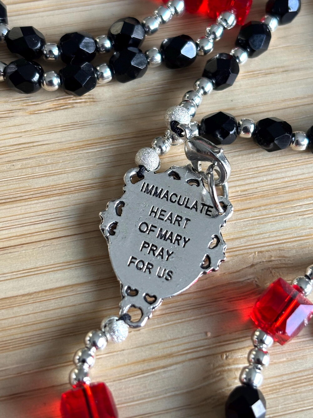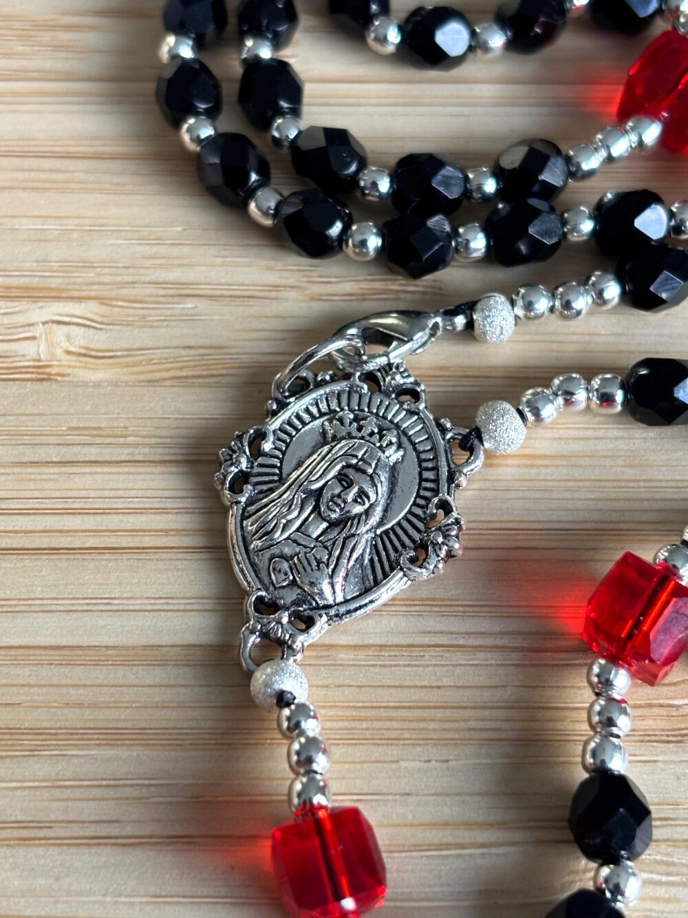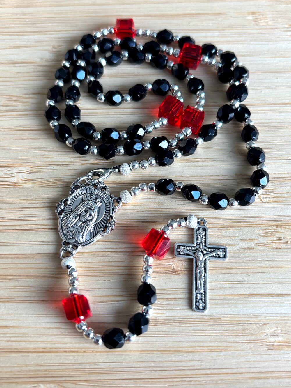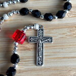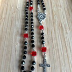Chapelet chrétien, rosaire chrétien, chapelet cristal noir rouge, chapelet original unique, rosaire de protection, chapelet porte bonheur