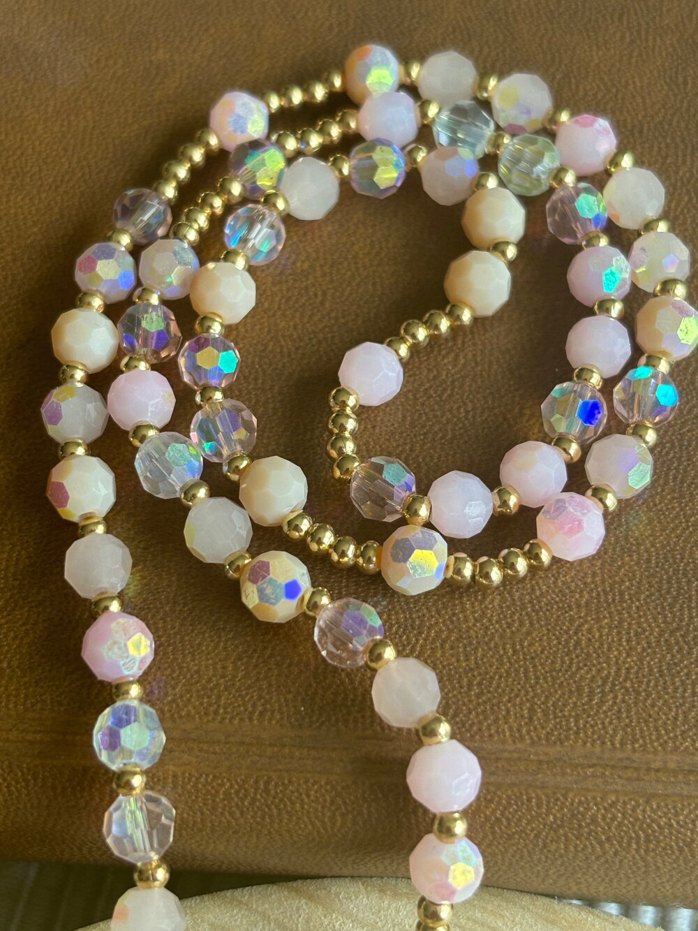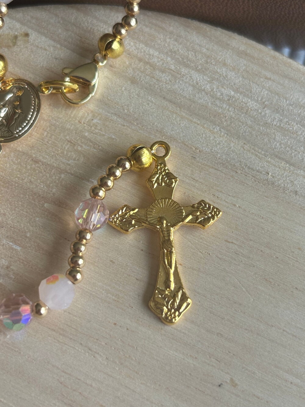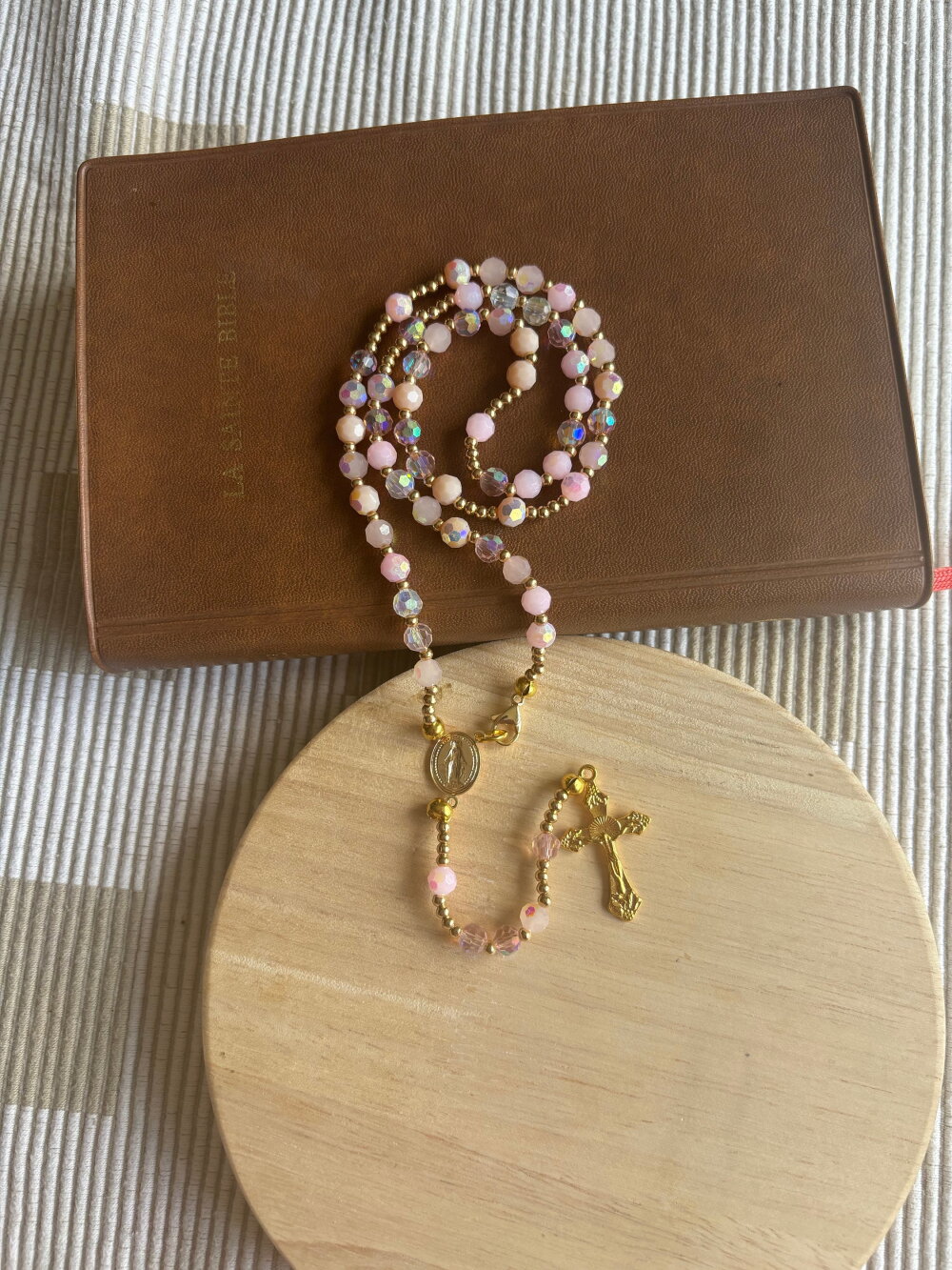 Chapelet Chrétien , rosaire Chrétien fait main, chapelet composé de perles en cristal de 6 mm, dégradé de rose avec sa croix or en métal inoxydable.