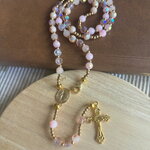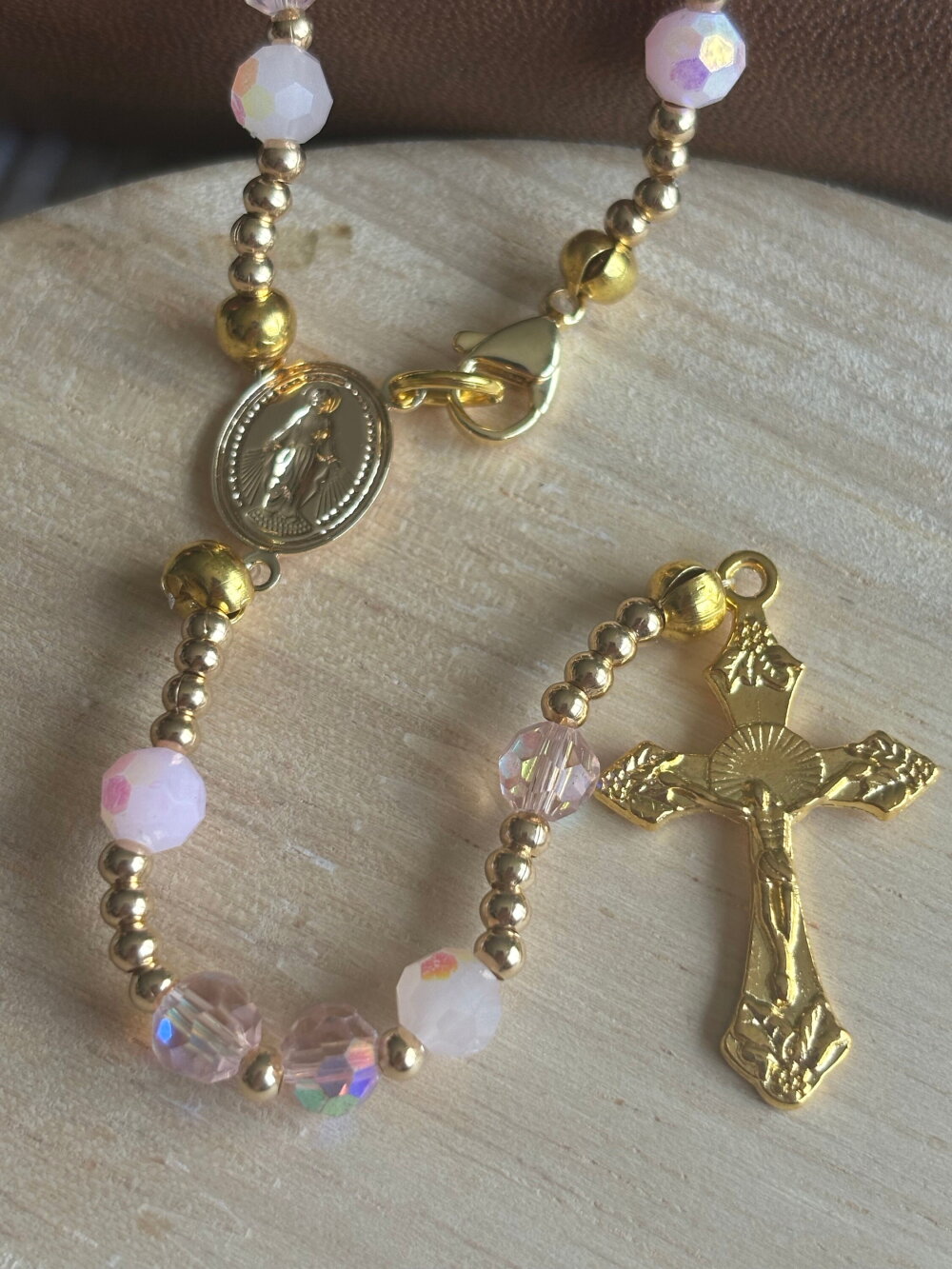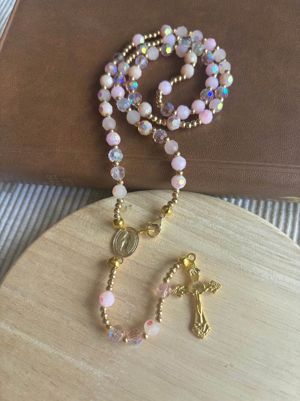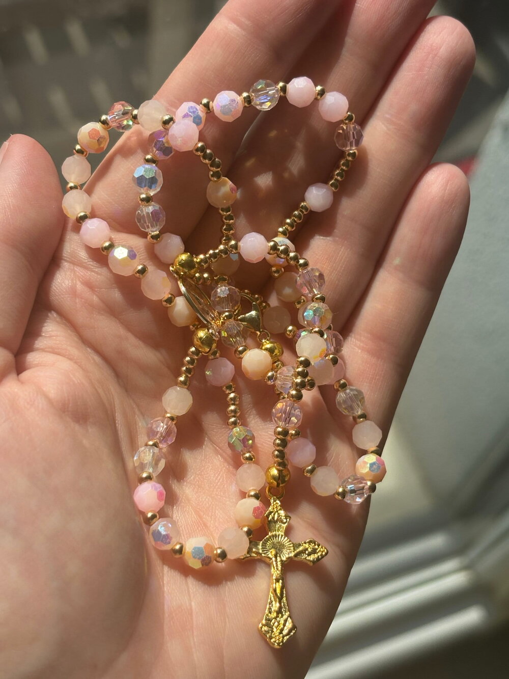 Chapelet chrétien, rosaire chrétien, chapelet cristal rose, chapelet original unique, rosaire de protection, chapelet porte bonheur, cadeau