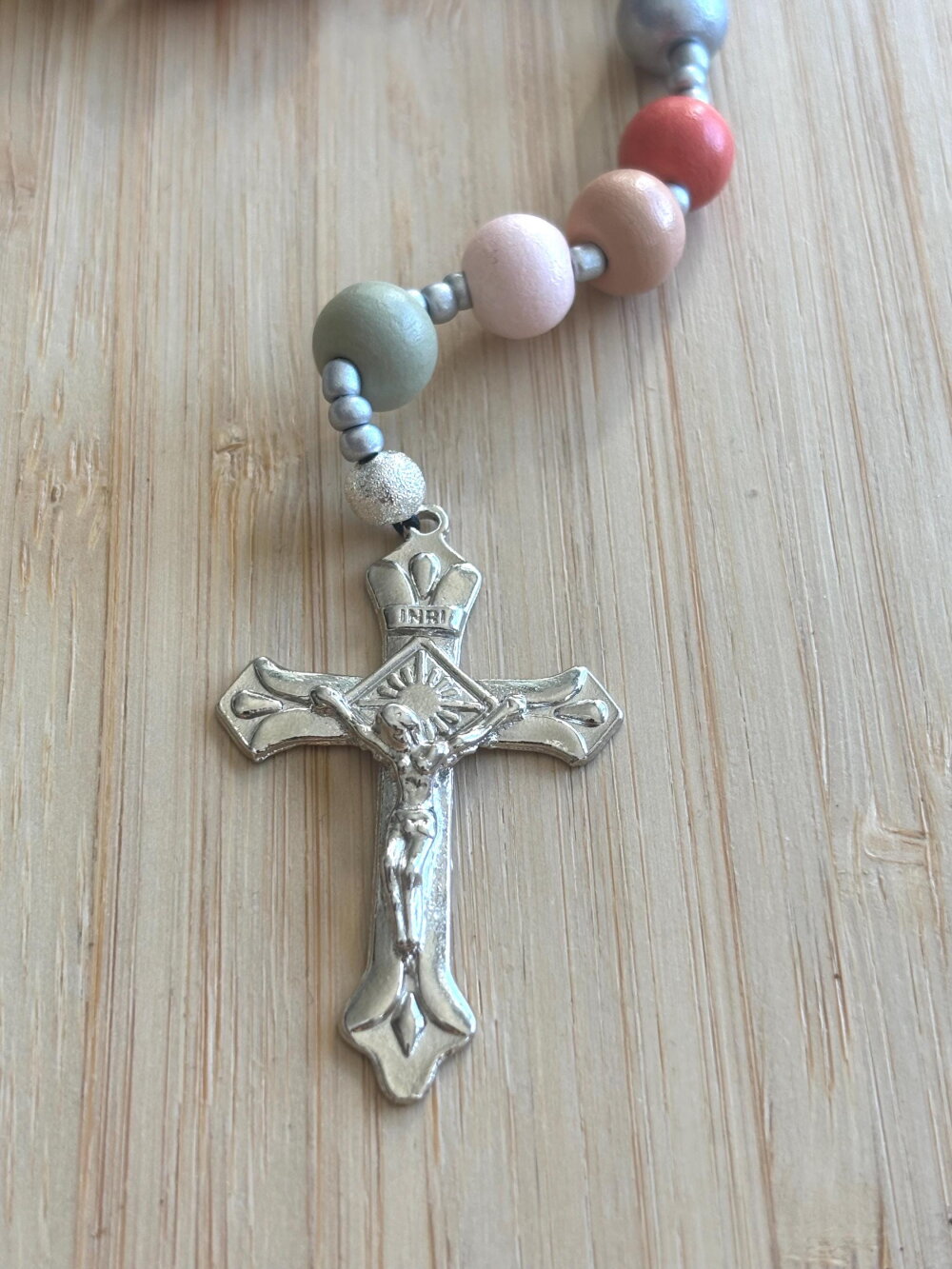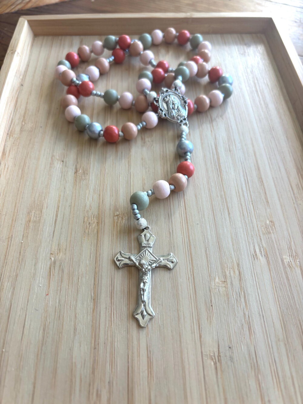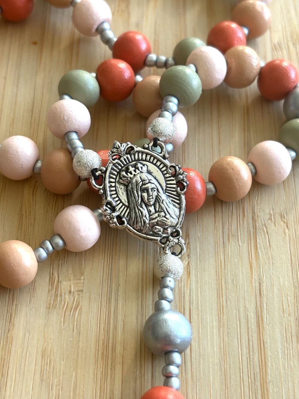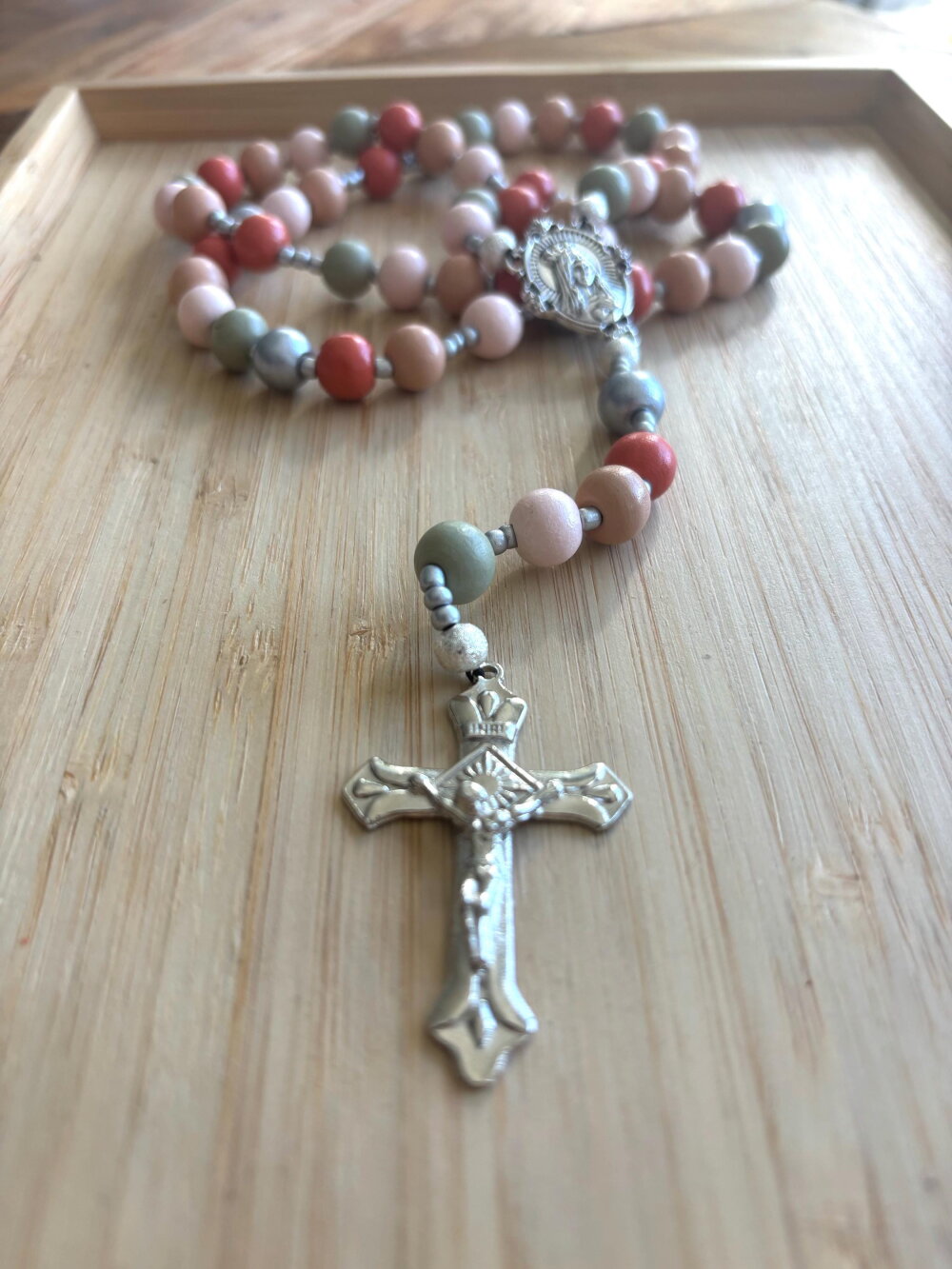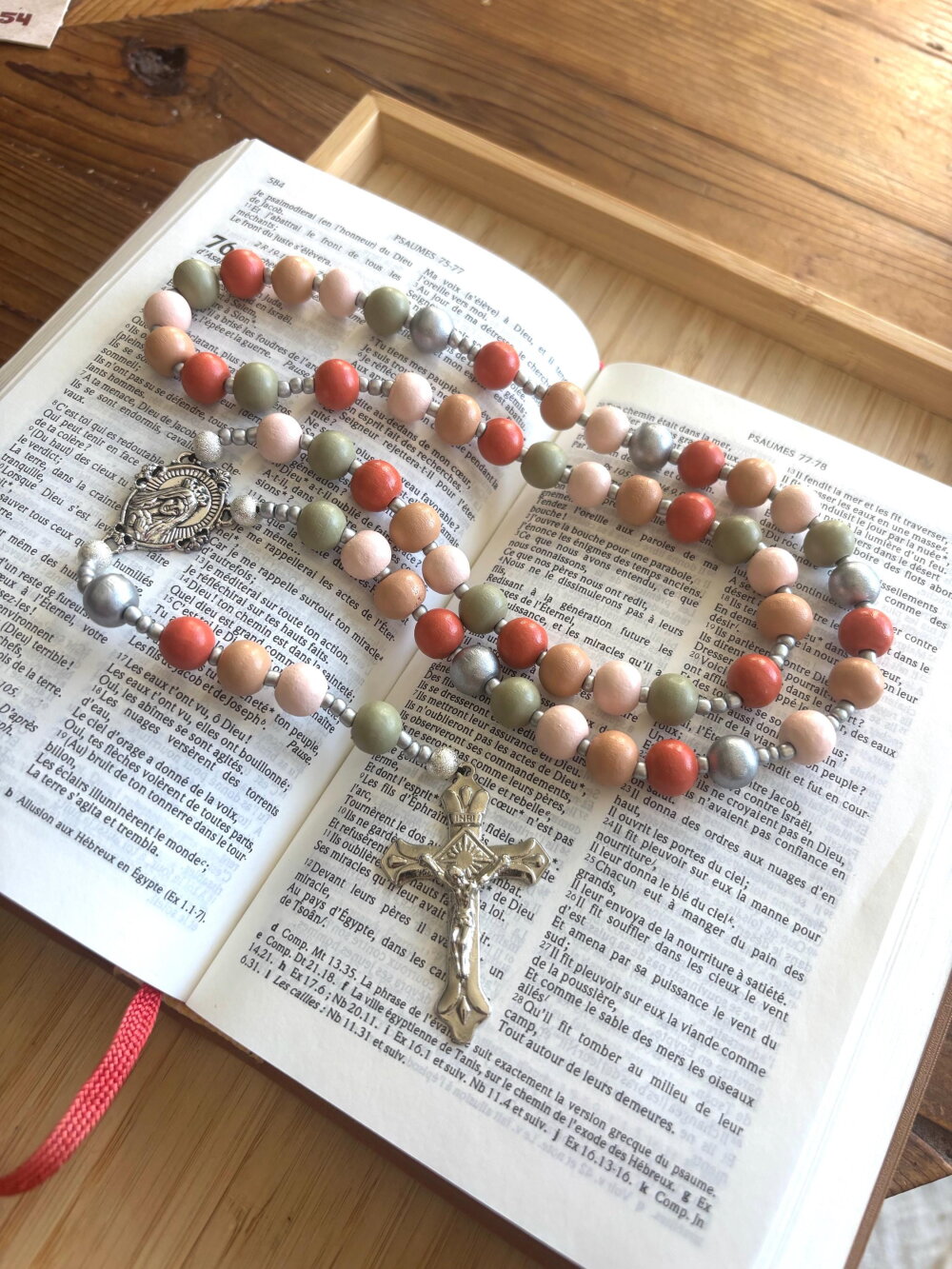 Chapelet chrétien, rosaire chrétien, chapelet perles bois, chapelet bois multicolore, rosaire bois multicolore, rosaire protection, cadeau