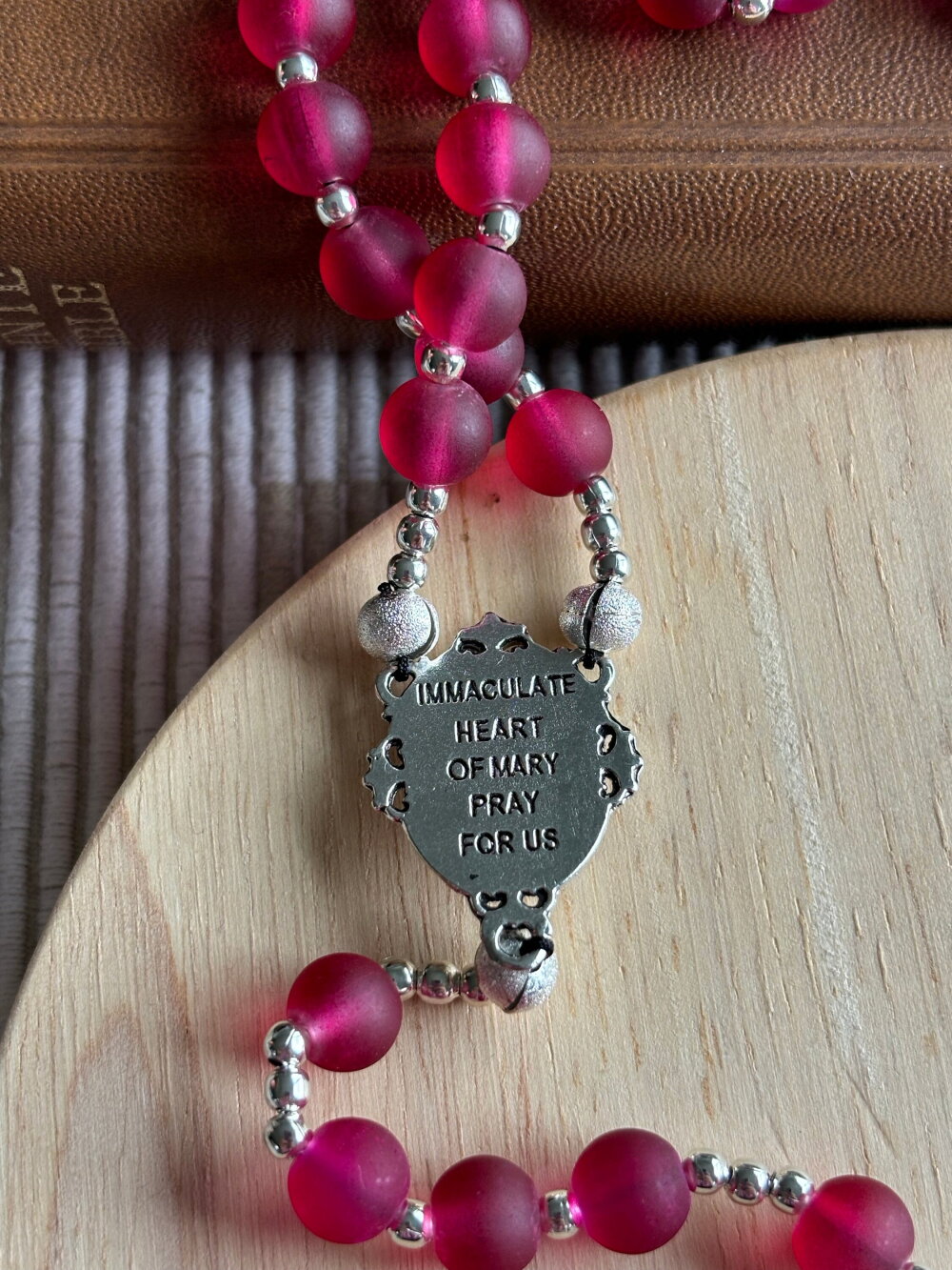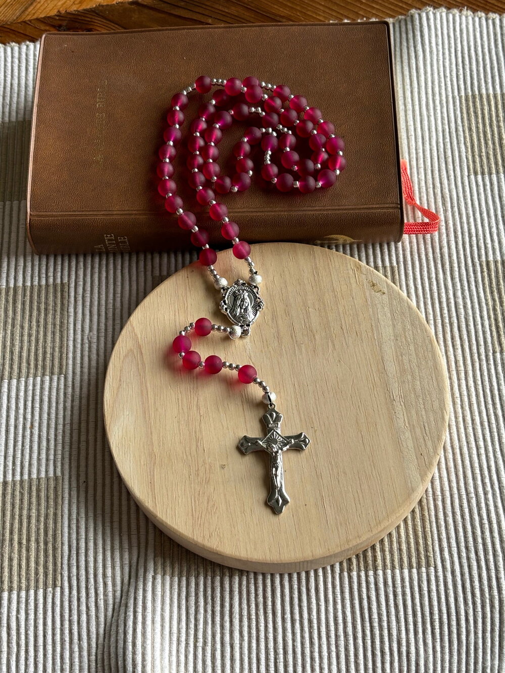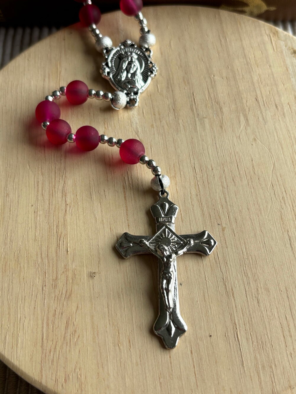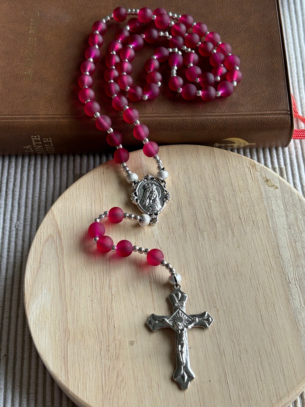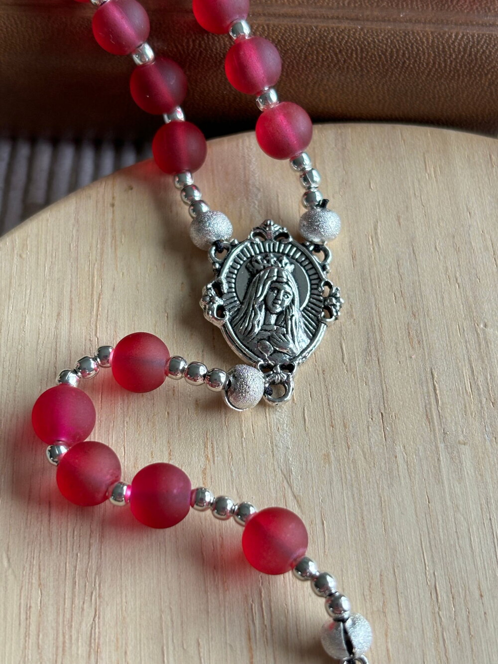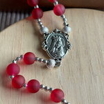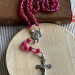 Chapelet chrétien, rosaire chrétien, chapelet perles en verre, chapelet rouge framboise, chapelet protection, chapelet porte bonheur