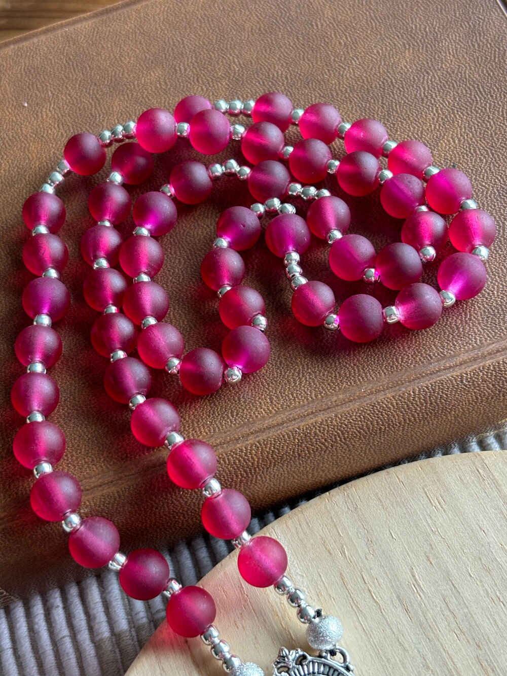 Chapelet Chrétien , rosaire Chrétien fait main, chapelet composé de perles en verre dépoli , d’un diamètre de 8 mm, avec sa croix argent en métal inoxydable.