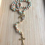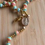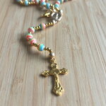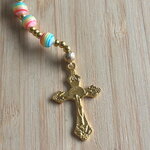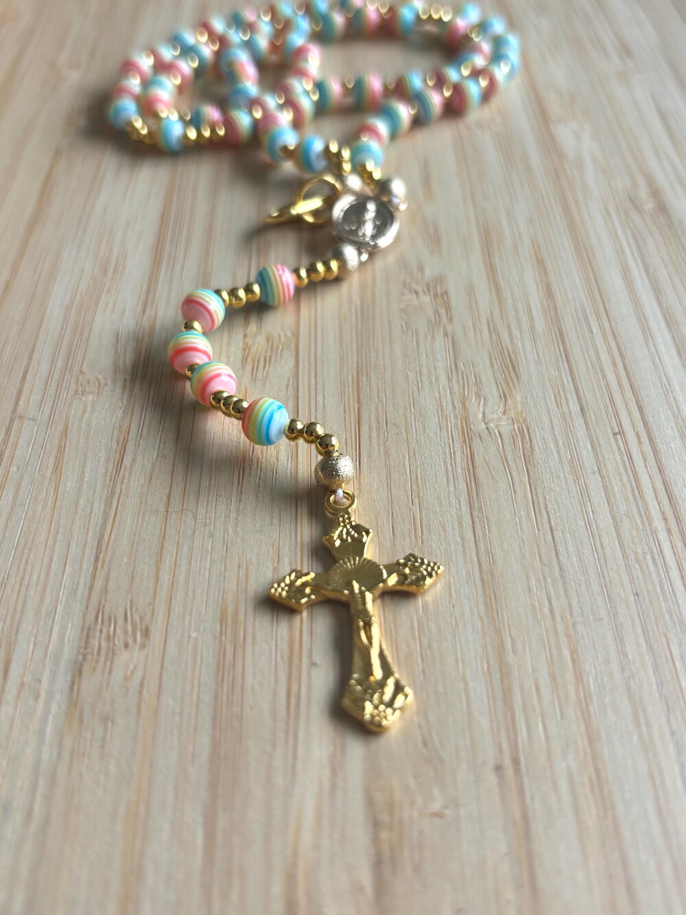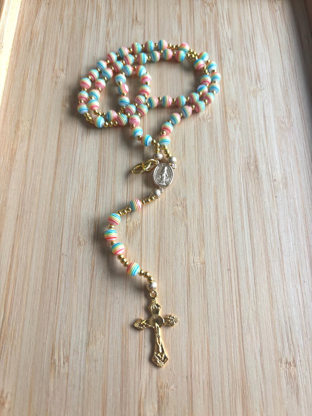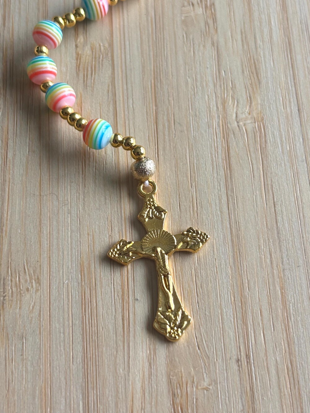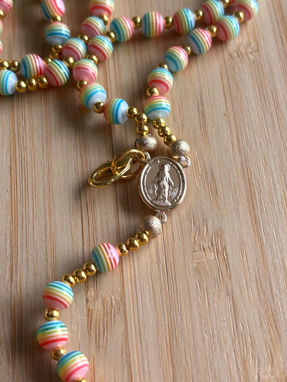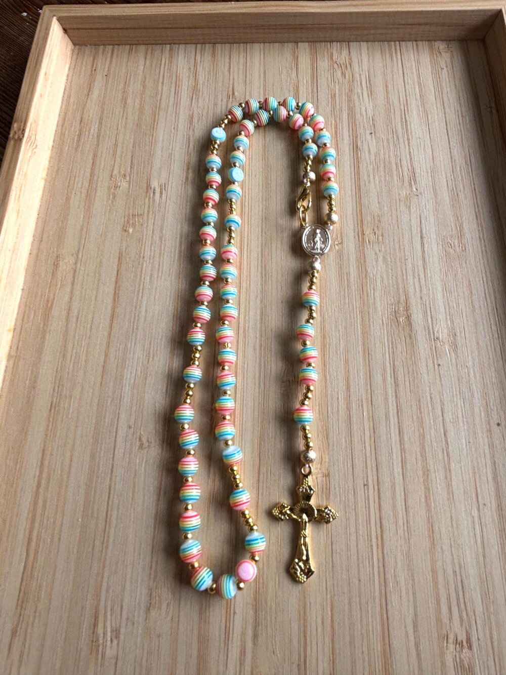Chapelet chrétien, rosaire chrétien, chapelet perles multicolore, chapelet perles rayé, rosaire perles multicolore, chapelet prière, cadeau