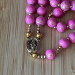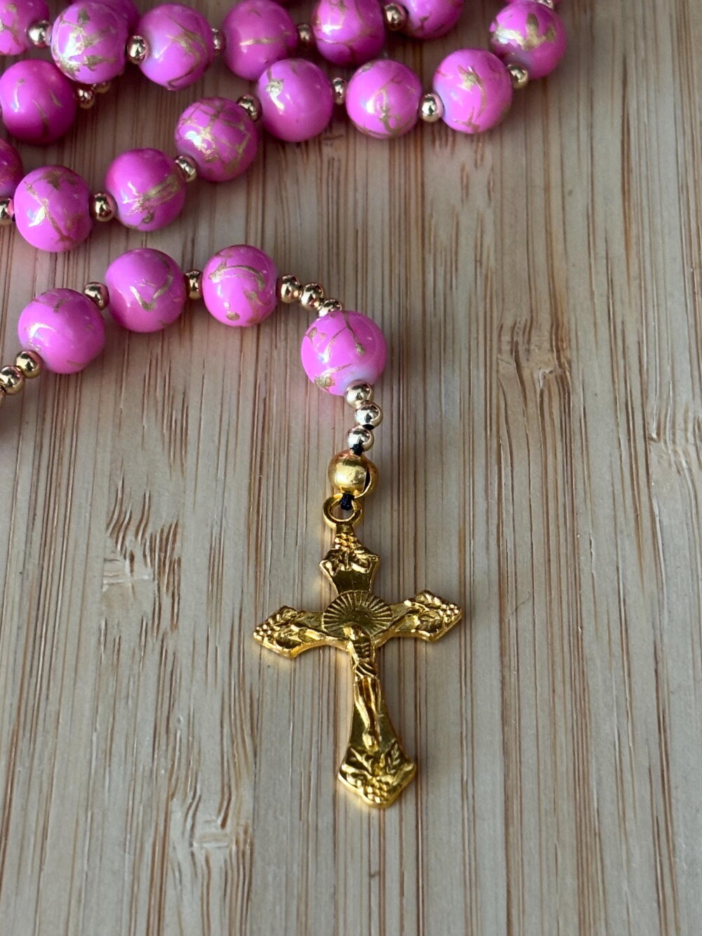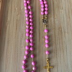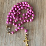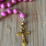 Chapelet chrétien, rosaire chrétien, chapelet perles rose, chapelet rose or, rosaire protection, chapelet porte bonheur, chapelet croix or,