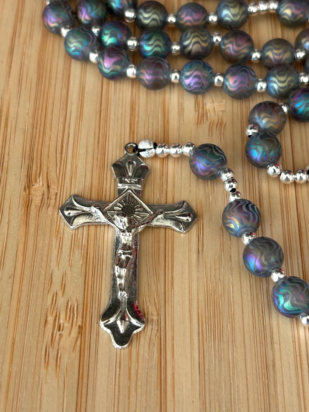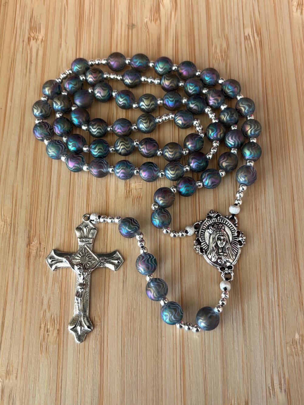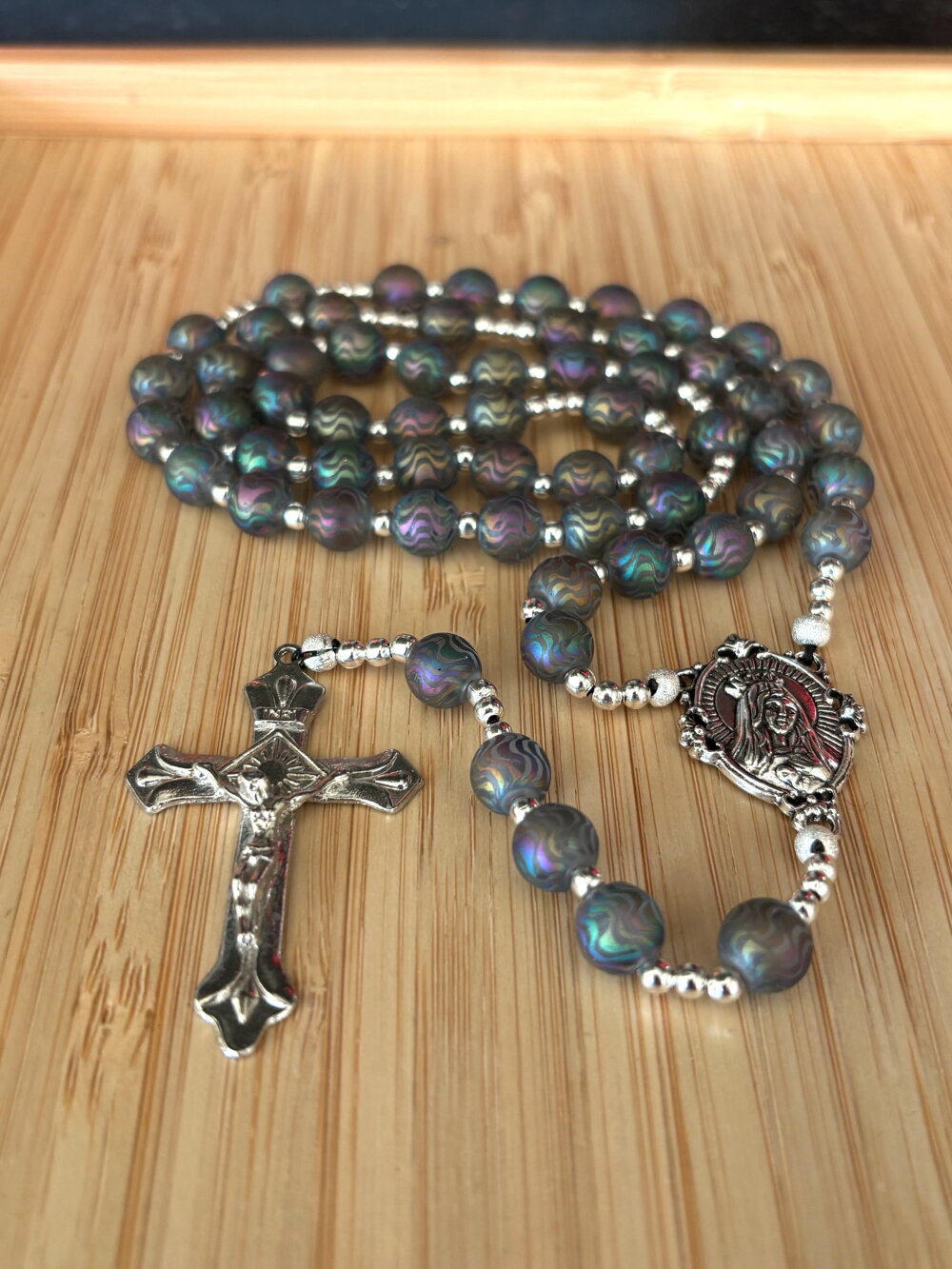 Chapelet chrétien, rosaire chrétien, chapelet perles verre, chapelet couleur arc en ciel, chapelet de protection, chapelet porte bonheur,