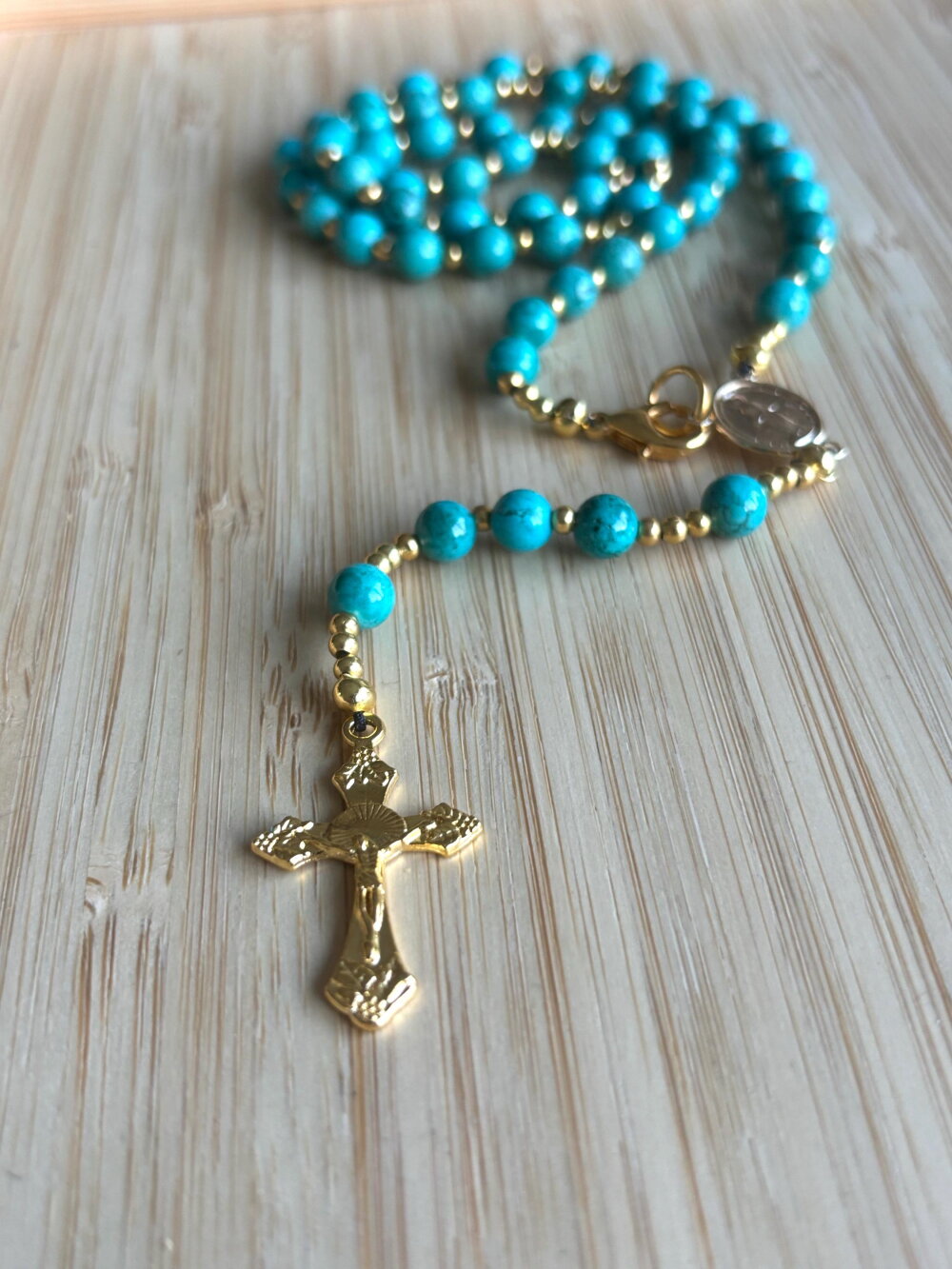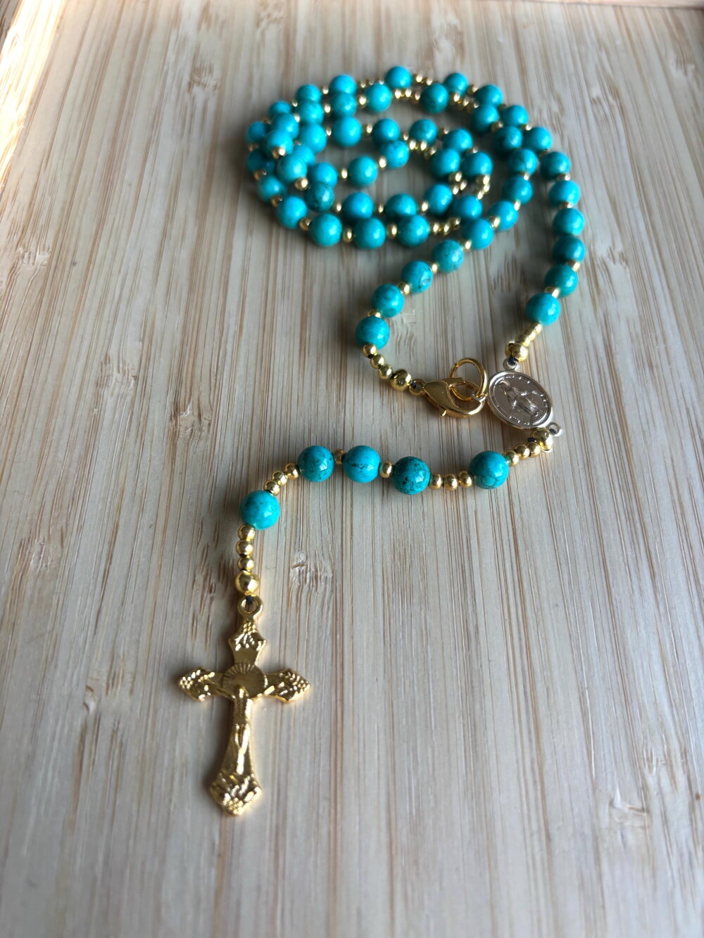 Chapelet chrétien, rosaire chrétien, chapelet turquoise africaine, rosaire turquoise naturelle, chapelet pierre naturelle, cadeau chrétien
