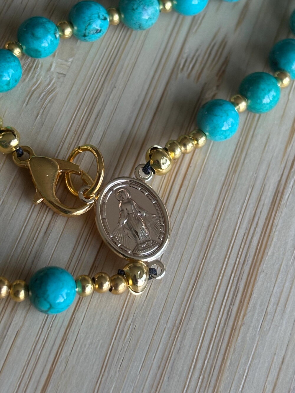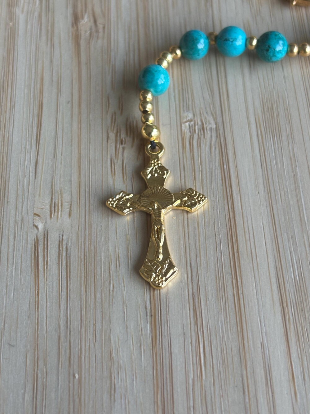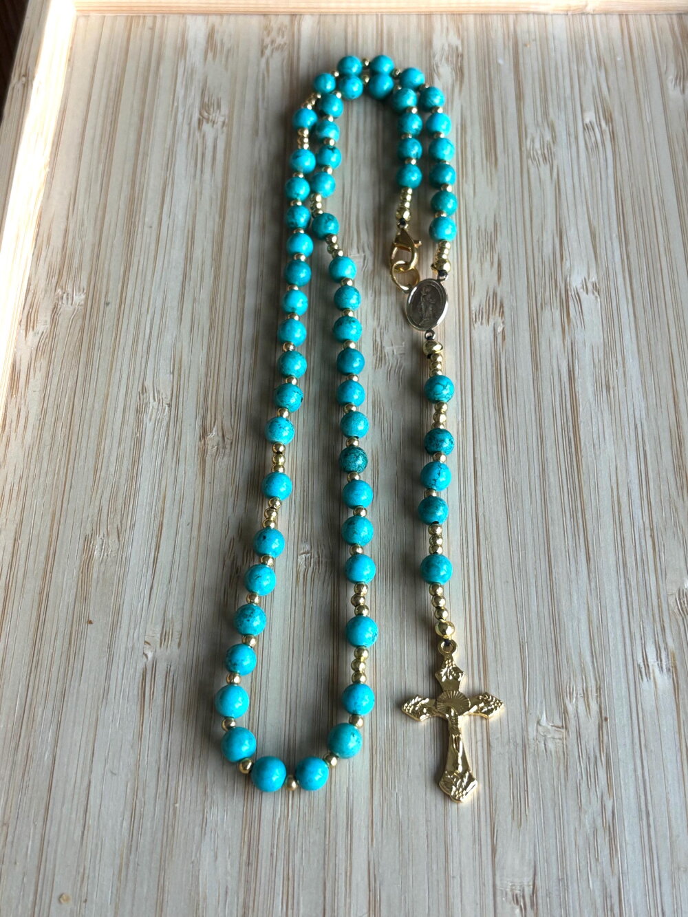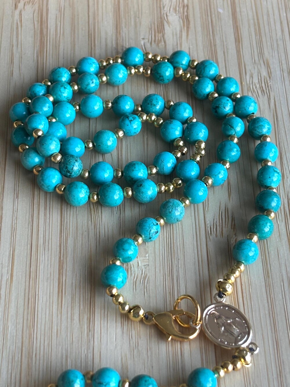 Chapelet chrétien en pierre naturelle, de jolie turquoise Africaine composent ce chapelet.