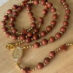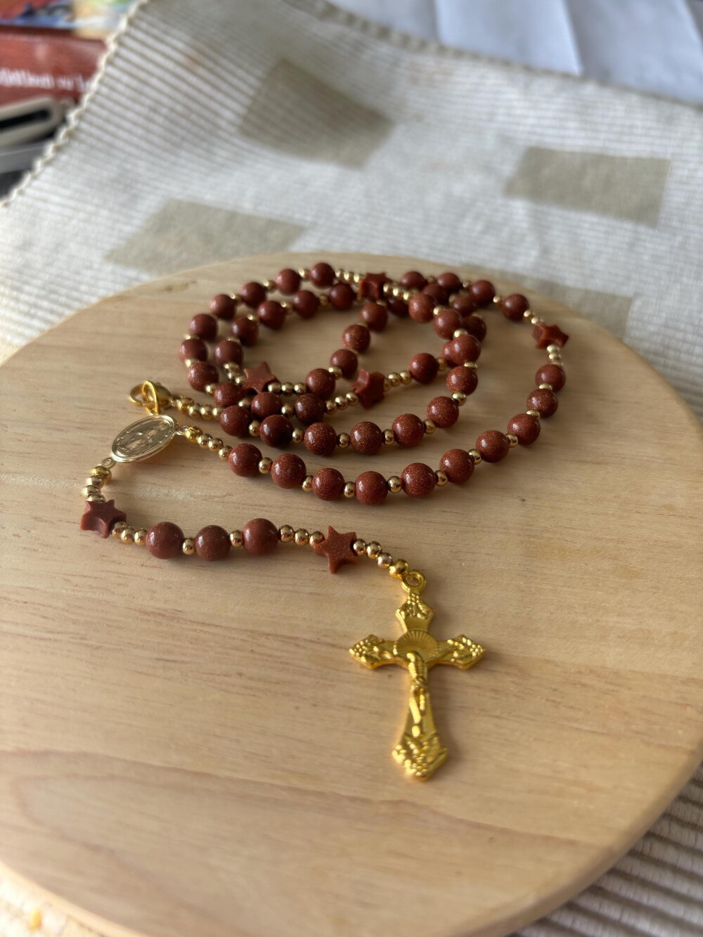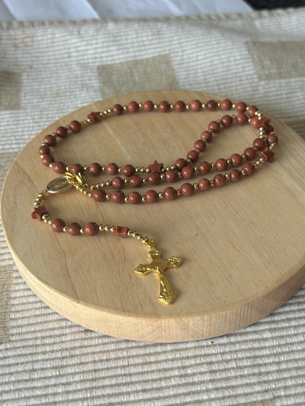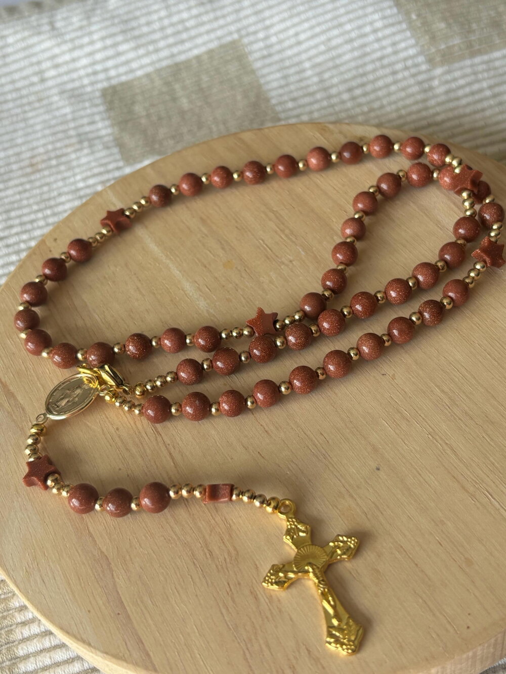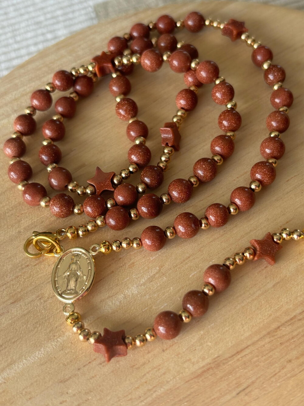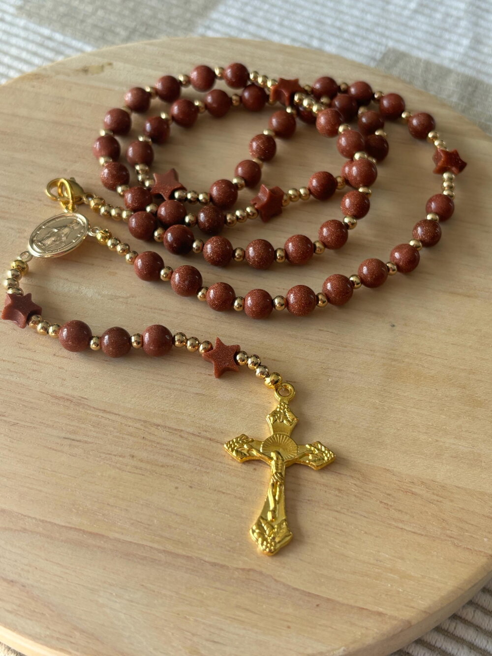 Chapelet Chrétien traditionnel, rosaire chrétien traditionnel, chapelet pierres naturelles, chapelet pierre goldstone, chapelet croix or,