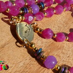 Un véritable travail de patience. Montage effectué avec minutie à l'aide d'une loupe et d'outils de bijouterie. Le bijou s'enfile par le haut de la tête. Il peut donc être porté en tour de cou. Vous pourrez, également, le porter en tant que bracelet (3 tours pour un poignet d'environ 8.5 cm à 9 cm de diamètre.