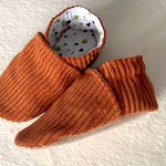 une paire de chaussons en velours rouille doublé polaire blanche ou coton au choix.