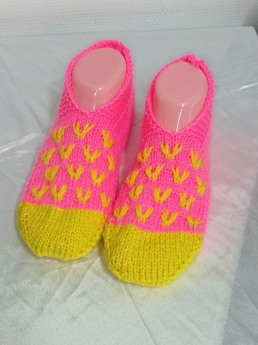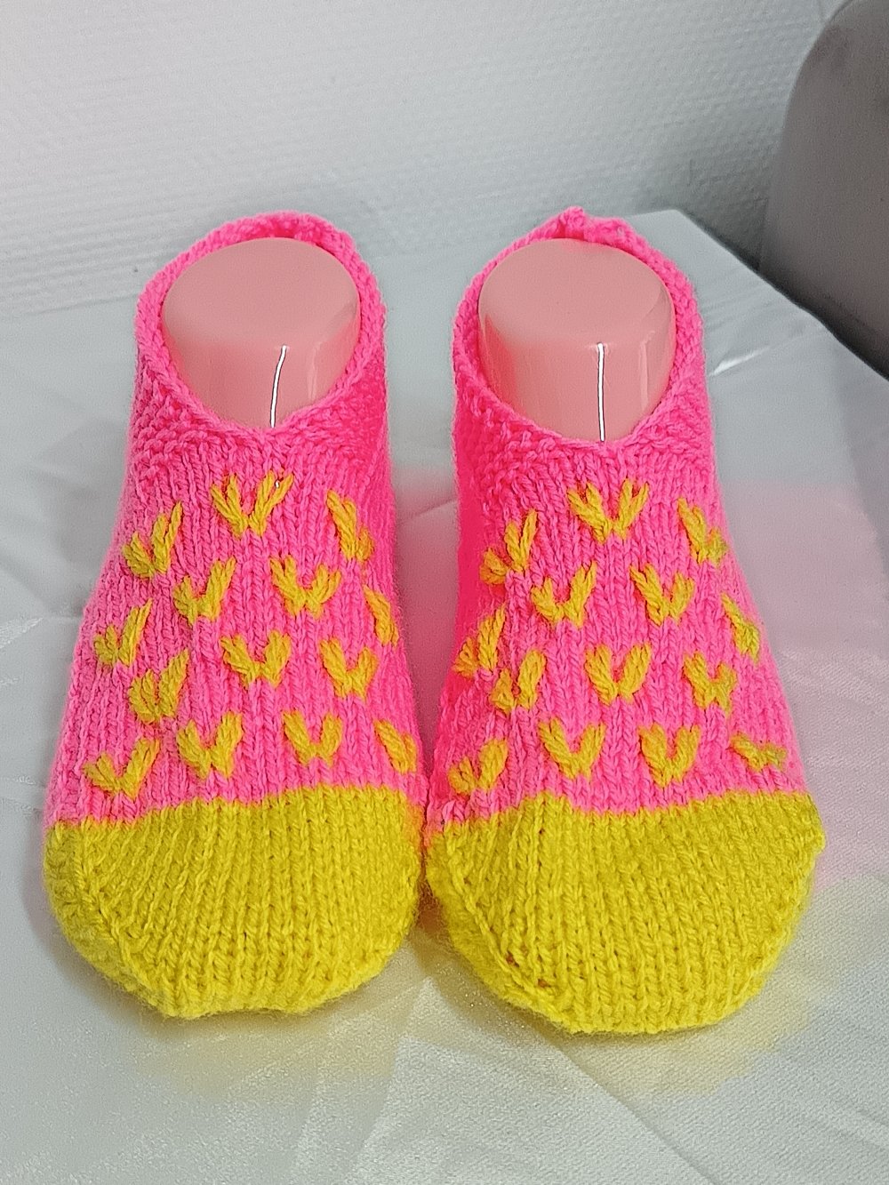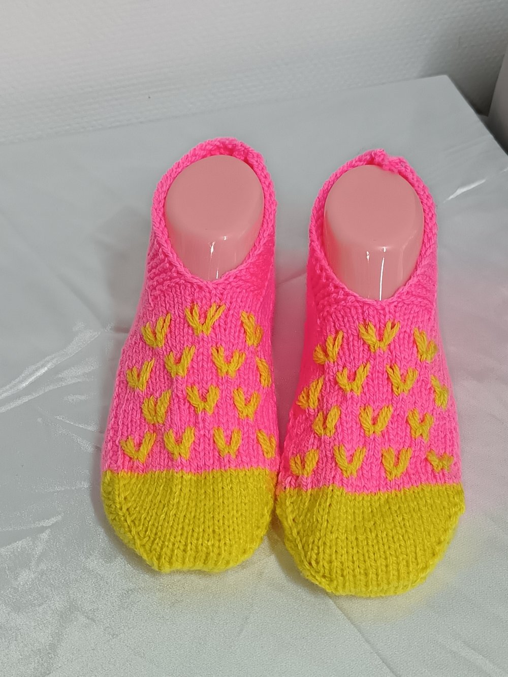 Ces jolis chaussons pour femme sont entièrement faits main au tricot, avec soin et passion. Réalisés en laine acrylique douce et chaude, ils allient confort et élégance pour garder vos pieds bien au chaud durant les soirées fraîches.