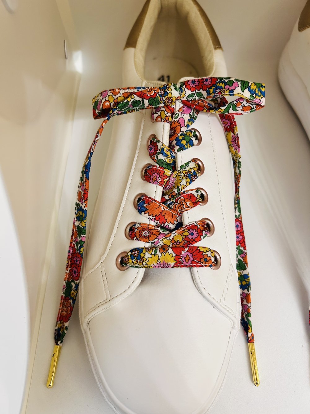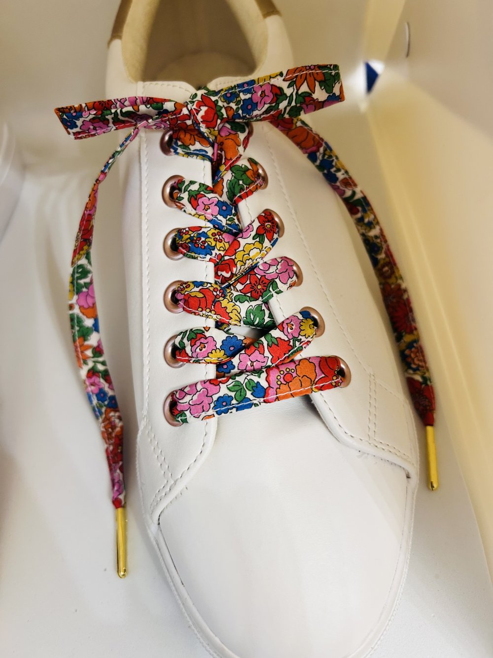Sublimez votre tenue avec ses lacets fleuri liberty en coton.