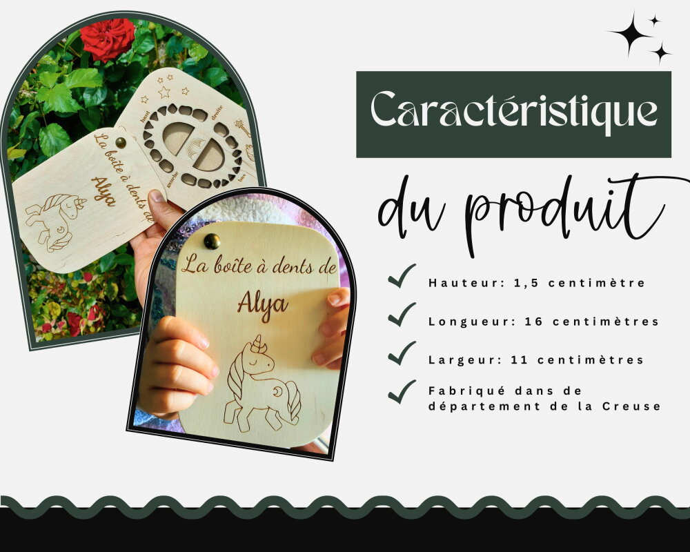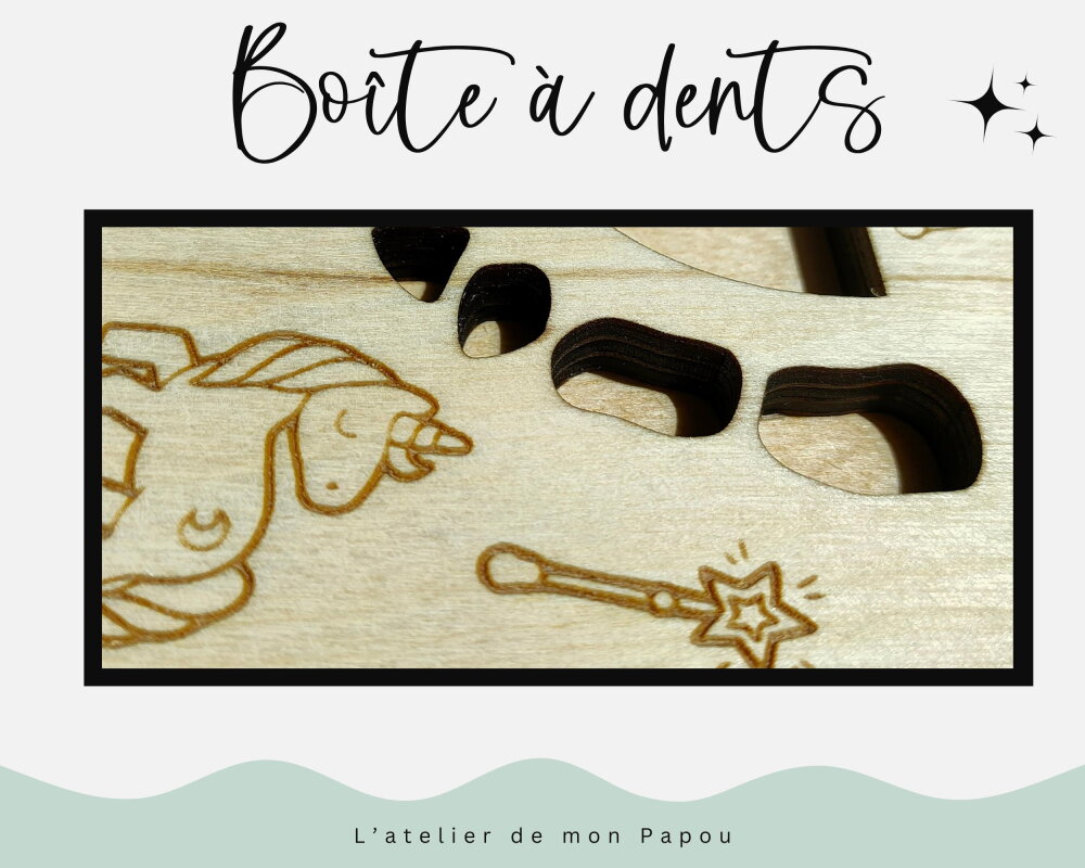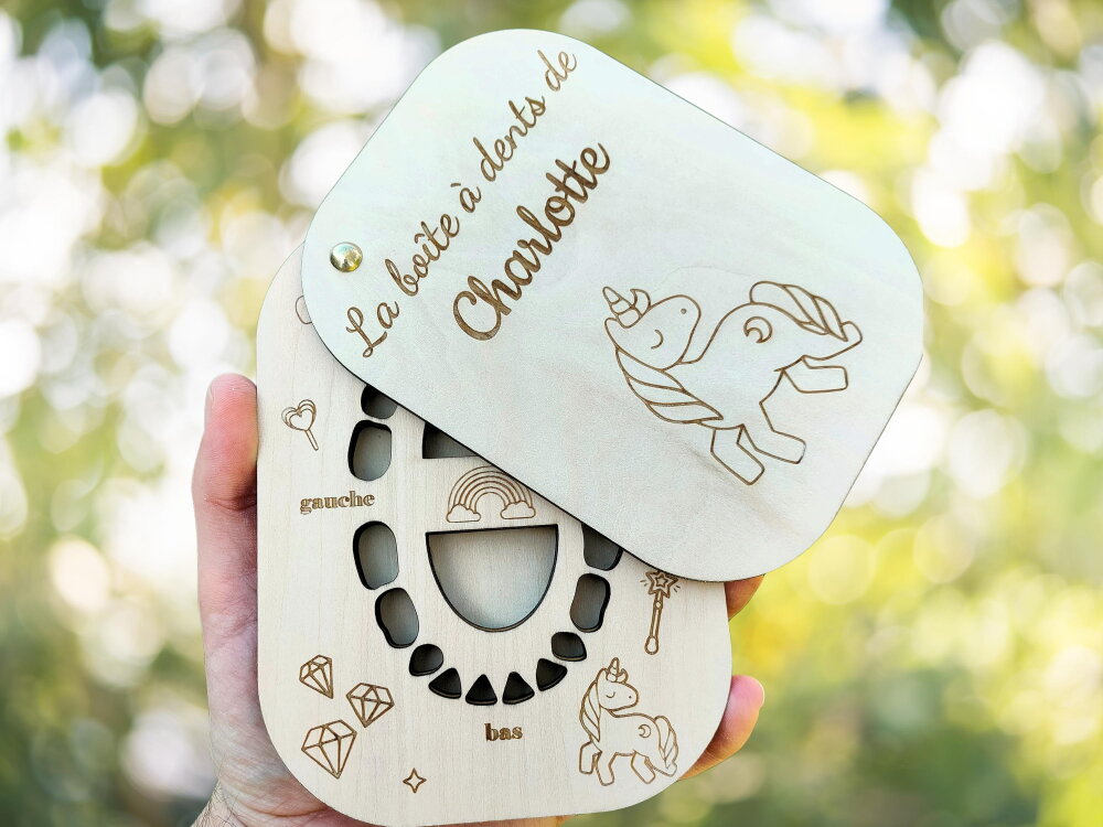 Boîte à dents de lait en bois – Licorne. Fait main en France, personnalisable et poétique. Un souvenir magique pour les premières dents de votre enfant.
