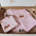 - dix lingettes toutes douces en coton éponge de couleur rose et coton certifié Oeko-Tex motif têtes de chat pour la toilette de bébé ( format 8.5 x 8.5 cm ).