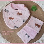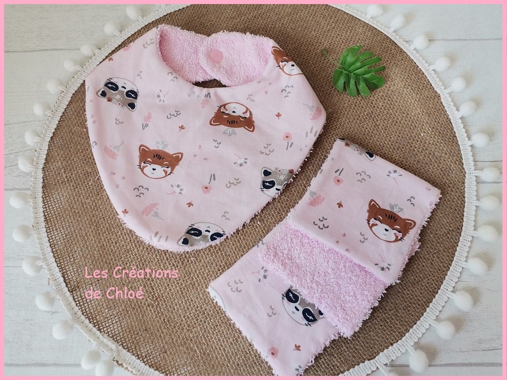 - un petit bavoir bandana 0 à 6 mois doublé coton éponge fermeture par bouton pression résine rose.