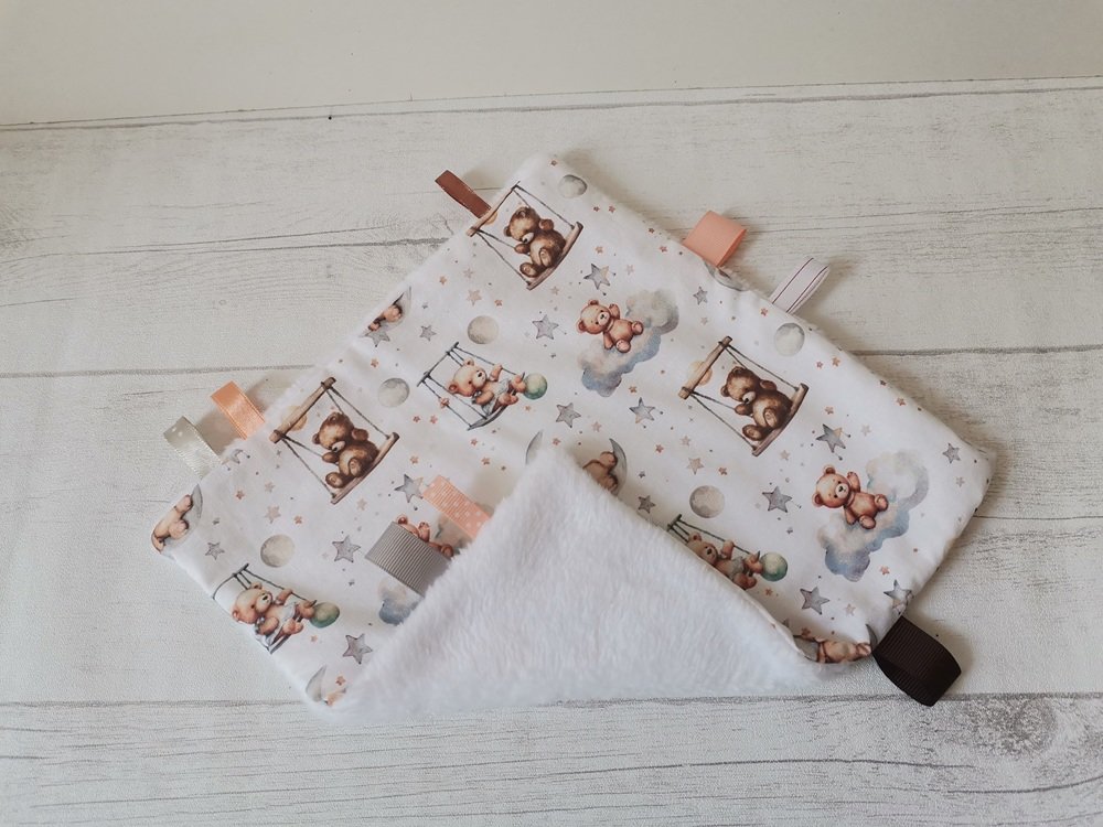 - huit lingettes toutes douces en coton certifié Oeko-Tex et nid d'abeilles pour la toilette de bébé ( format 9 x 9 cm )