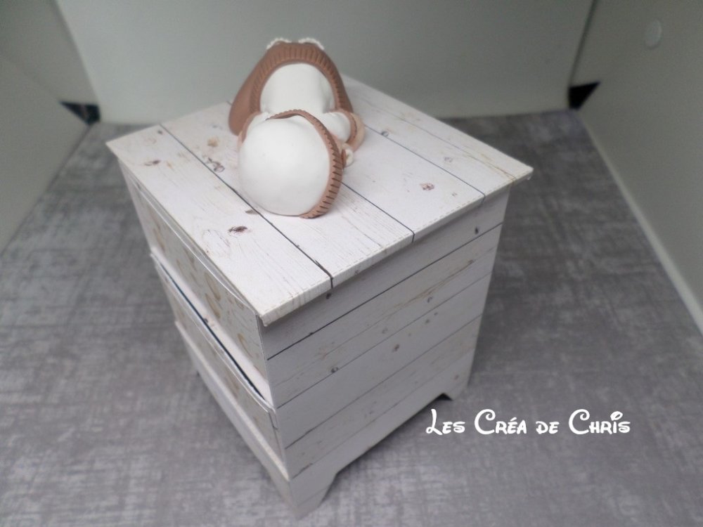 Commode en papier et carton épais avec ses 2 tiroirs.
