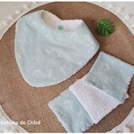 - un petit bavoir bandana 0 à 6 mois doublé coton éponge fermeture par bouton pression résine vert.