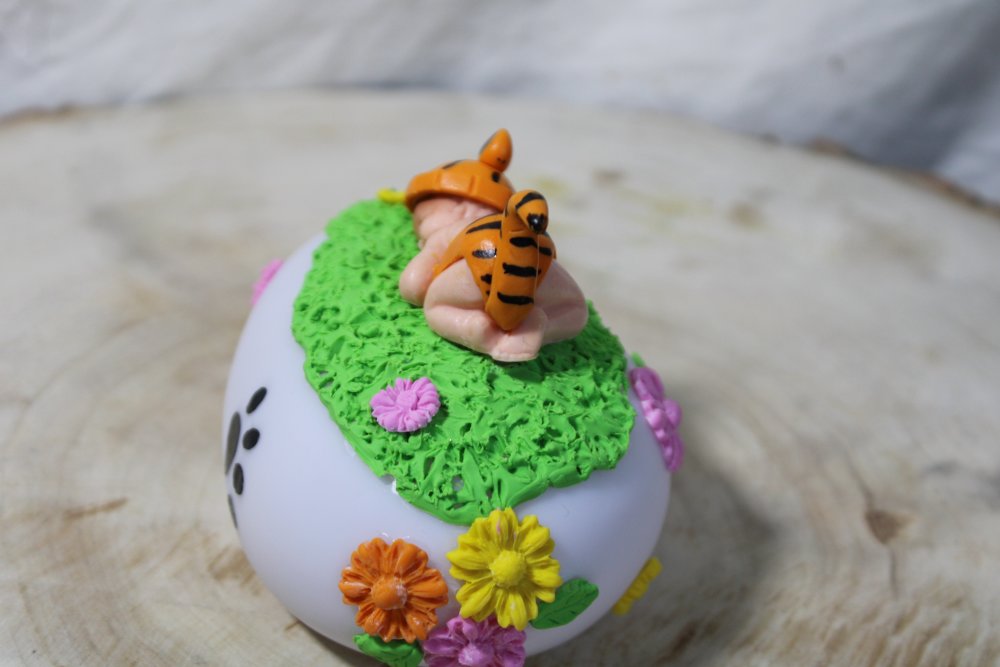 Tous les éléments qui compose cette veilleuse sont réalisées à la main en porcelaine froide