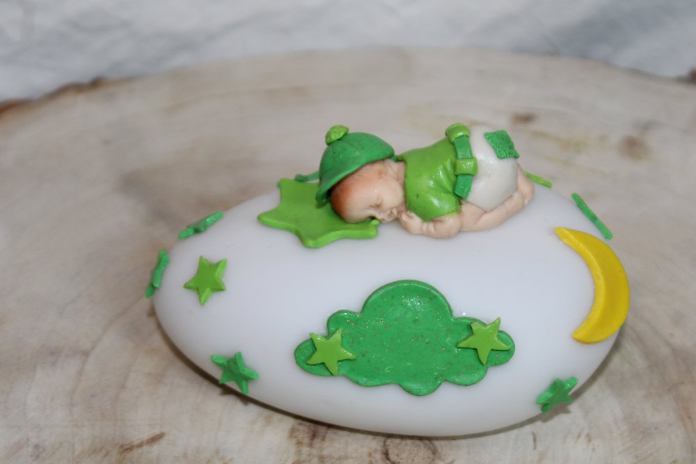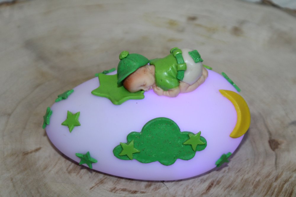 Tous les éléments qui compose cette veilleuse sont réalisées à la main en porcelaine froide