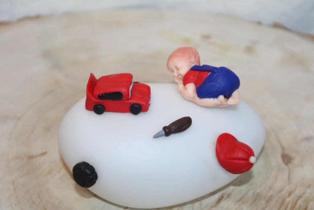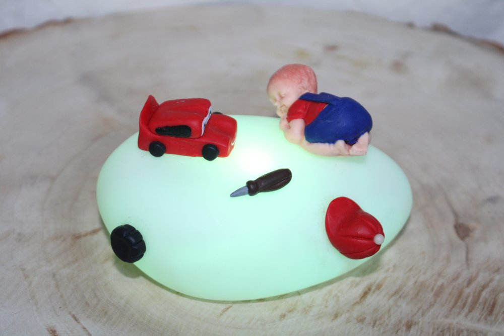 Tous les éléments qui compose cette veilleuse sont réalisées à la main en porcelaine froide