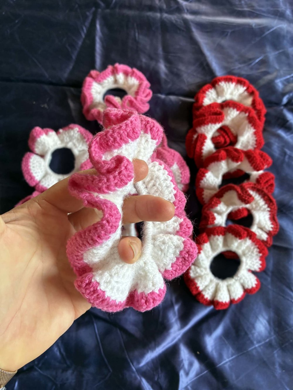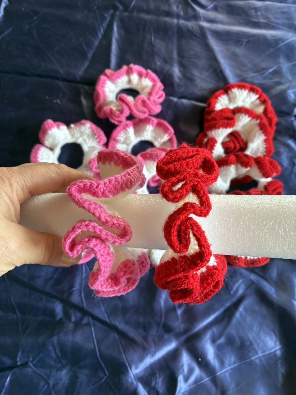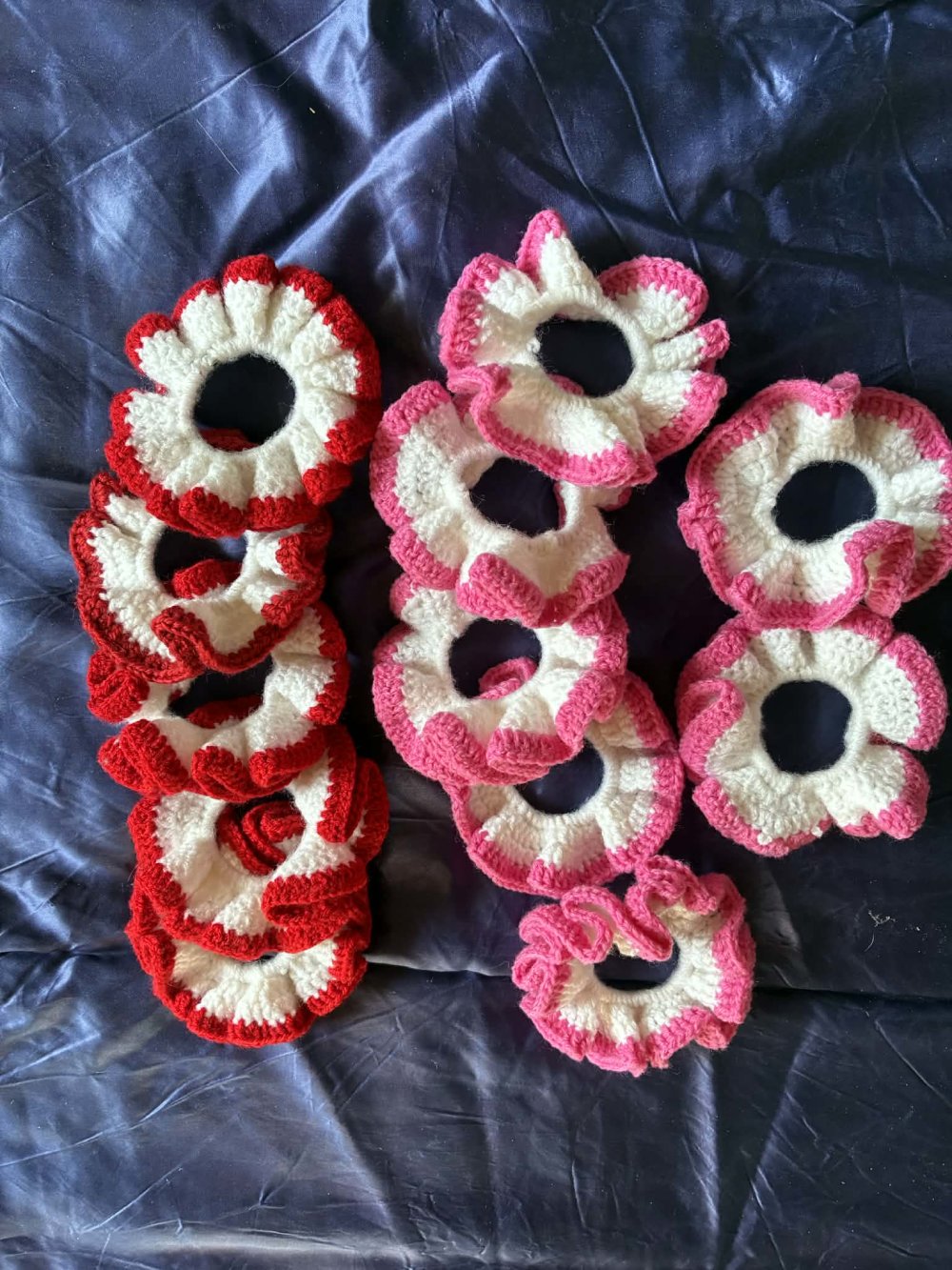 1 chouchou aux crochet fait main aux choix rouge ou rose