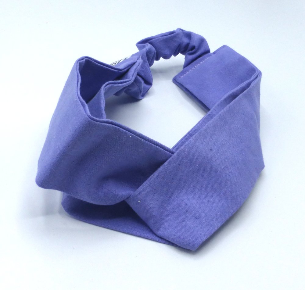 Bandeau pour femme en coton uni lavande élastiqué pour un tour de tête de 57 cm.