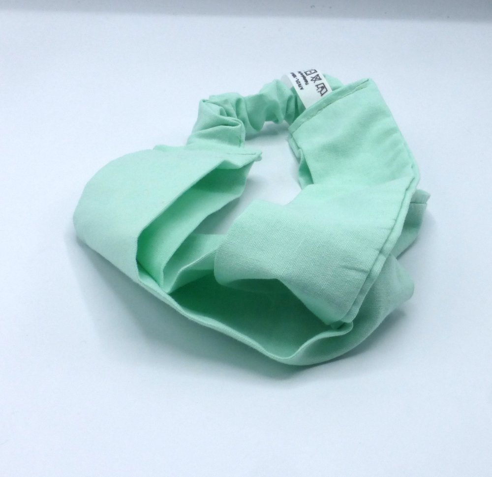 Bandeau pour femme en coton uni vert d'eau élastiqué pour un tour de tête de 57 cm.
