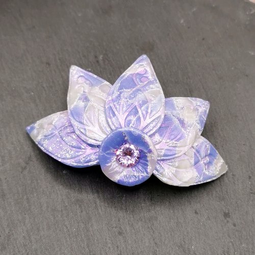- Réalisé en pâte polymère mauve et translucide pale effet marbré et pailleté