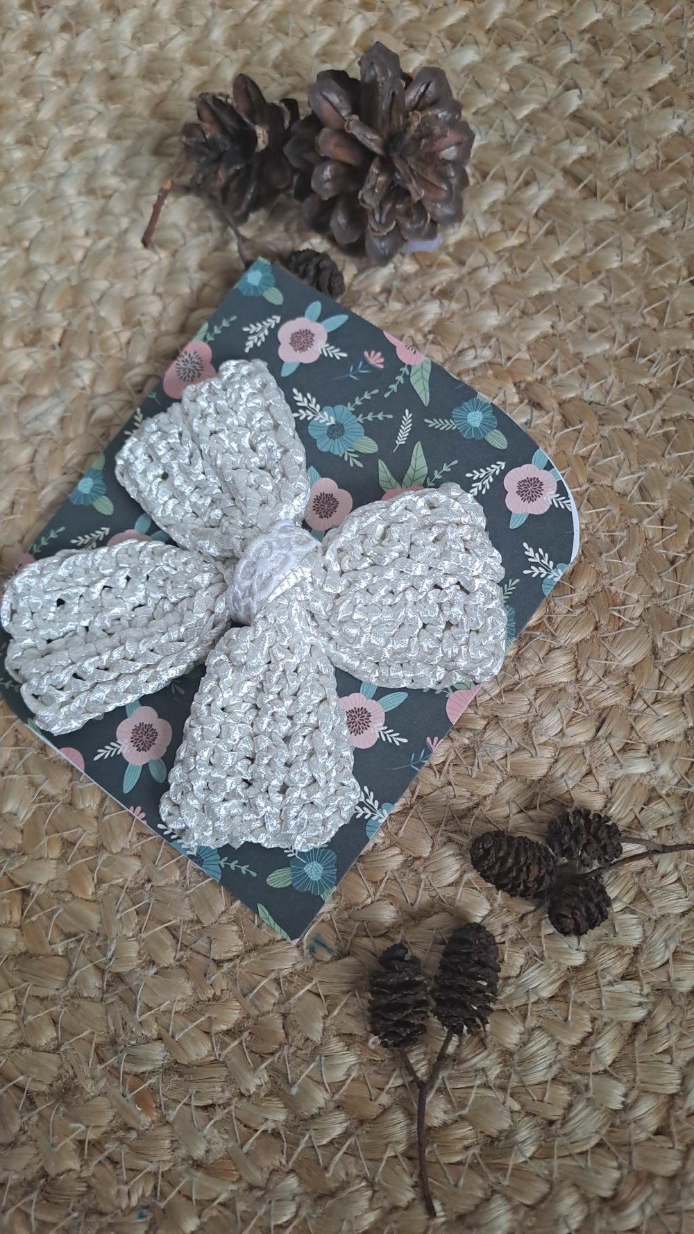 On adore la touche bohème et vintage fait main avec cette barrette au crochet en forme de nœud papillon. Parfaites pour les petites filles, et leur maman pour être assorties!!!