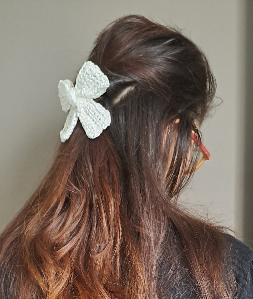 Barrette à cheveux style vintage grand noeud crochet, mode enfantine, matchy mère fille.