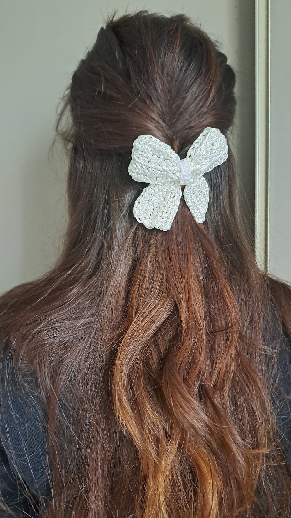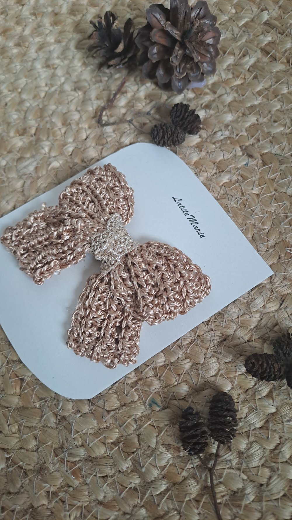 On adore la touche bohème et vintage fait main avec cette barrette au crochet en forme de nœud papillon. Parfaites pour les petites filles, et leur maman pour être assorties!!!