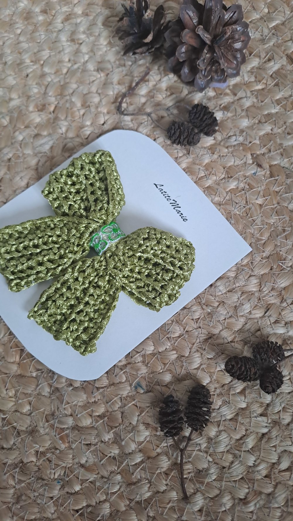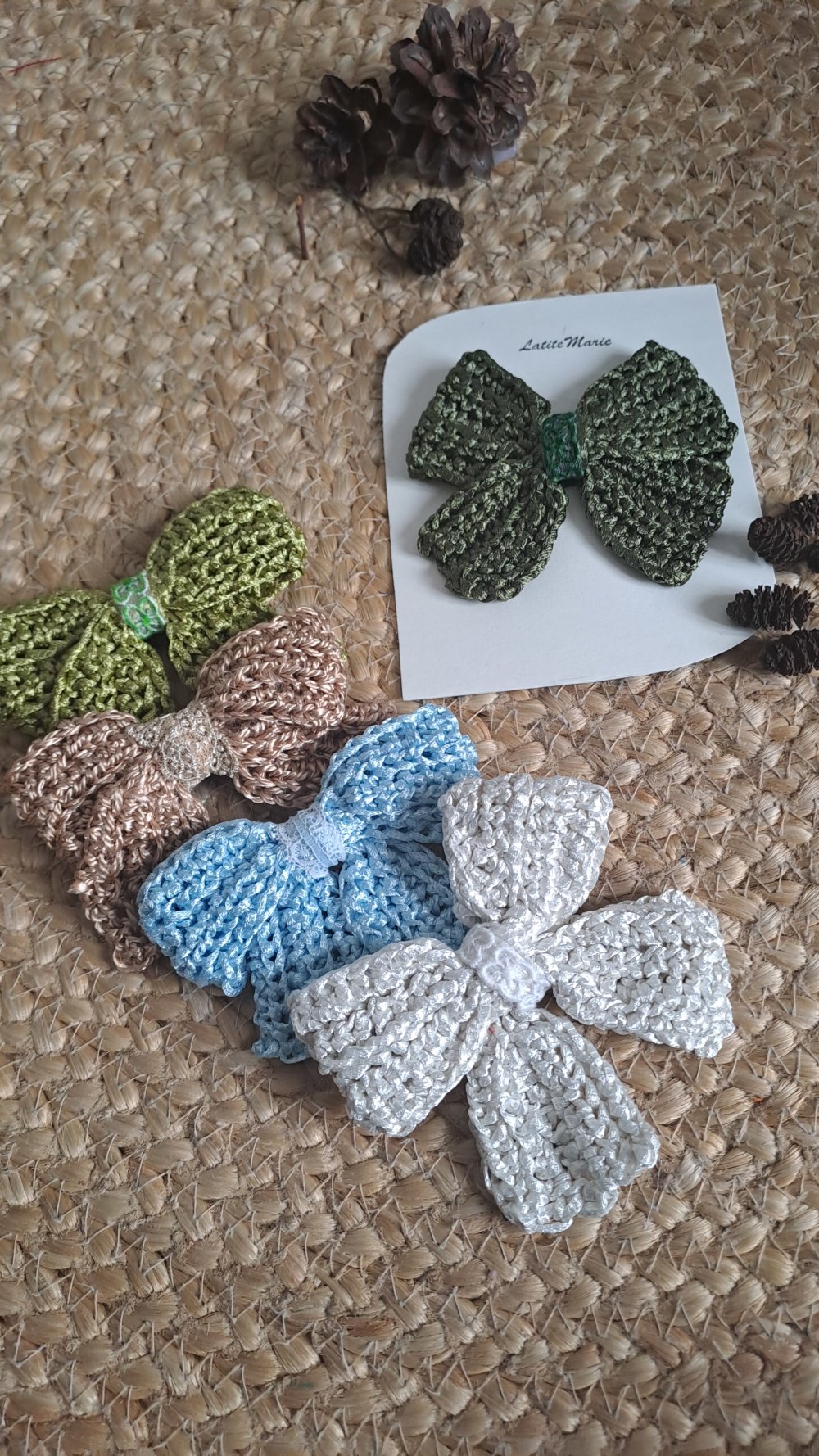 On adore la touche bohème et vintage fait main avec cette barrette au crochet en forme de nœud papillon. Parfaites pour les petites filles, et leur maman pour être assorties!!!