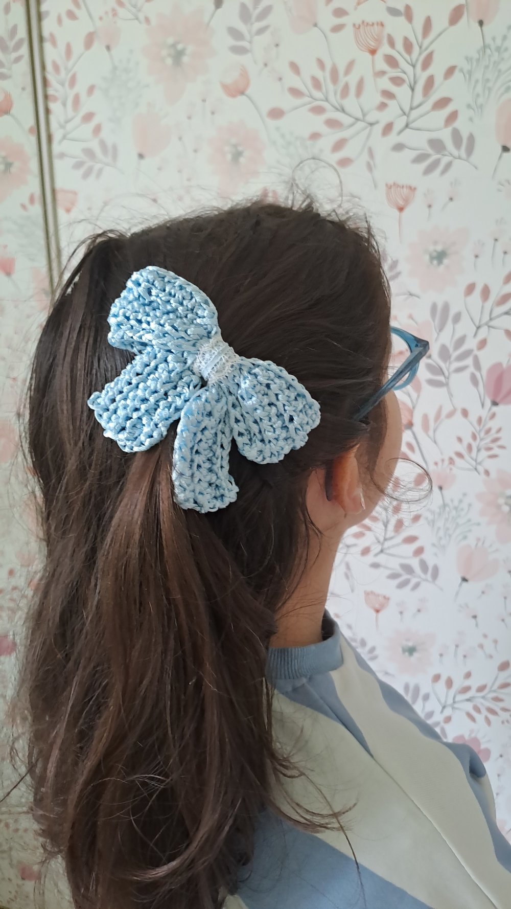 Barrette à cheveux style vintage grand noeud crochet, mode enfantine, matchy mère fille.