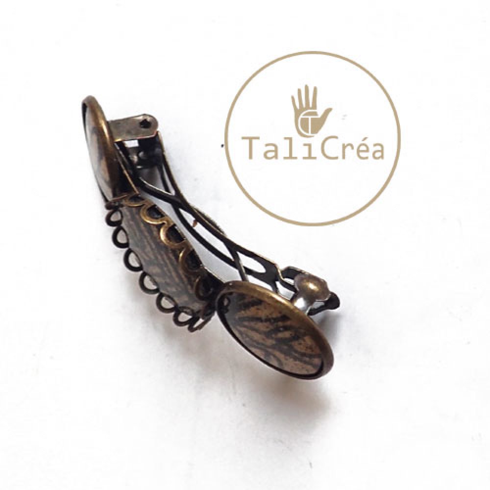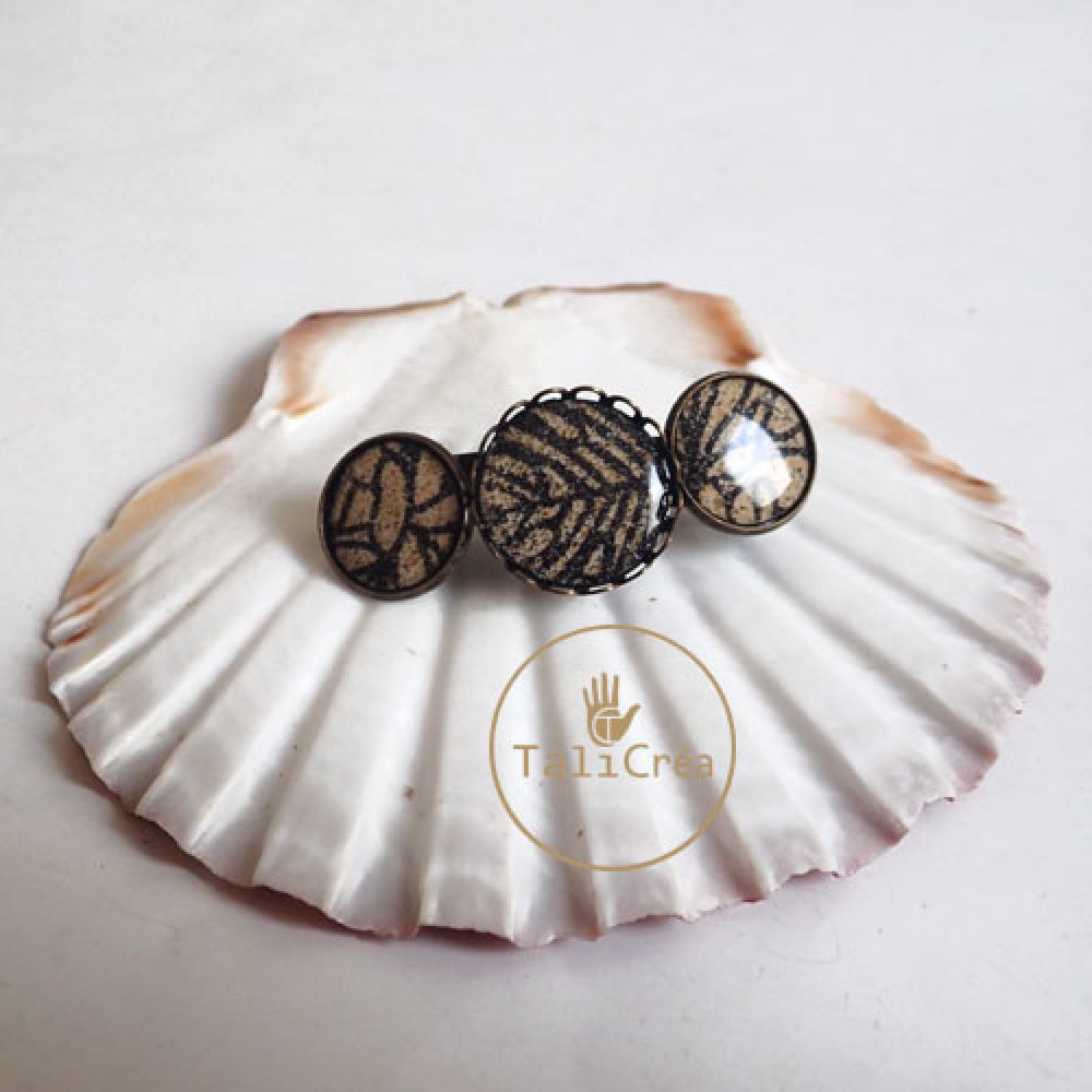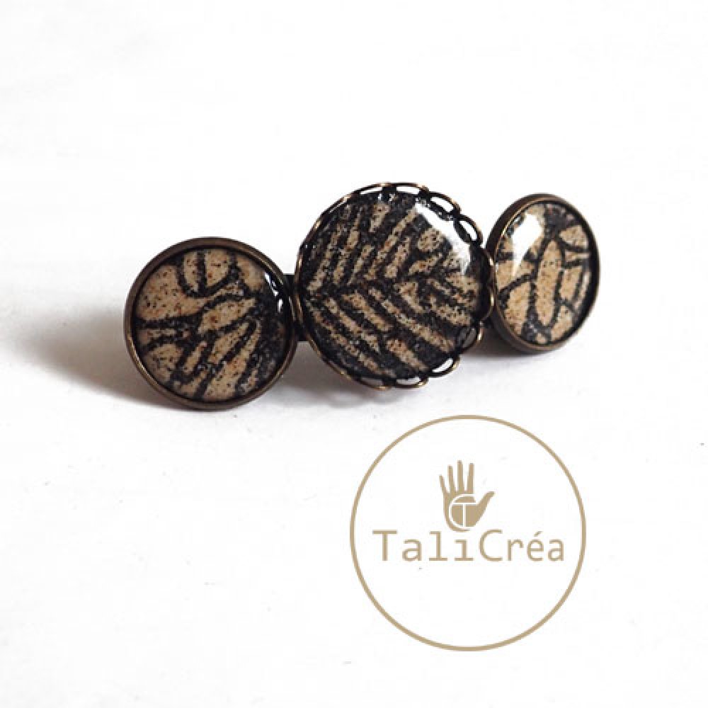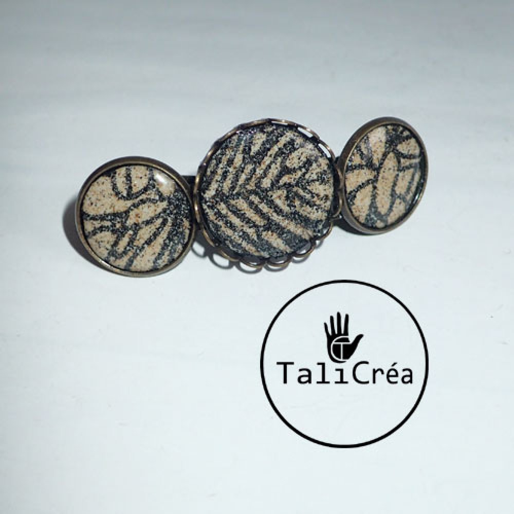 Une petite barrette 3 cabochons en sables noirs et jaunes.